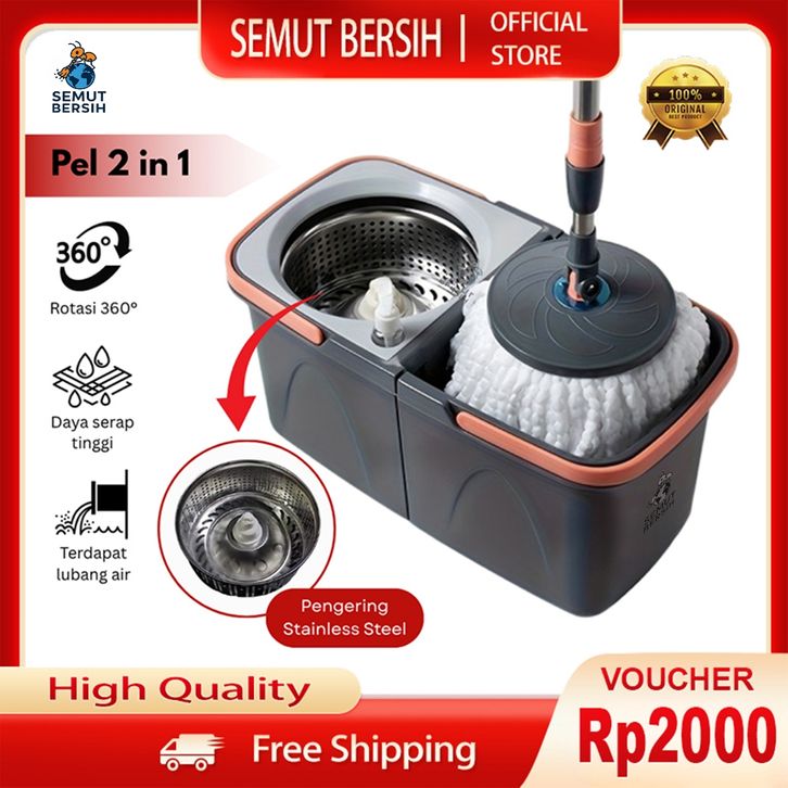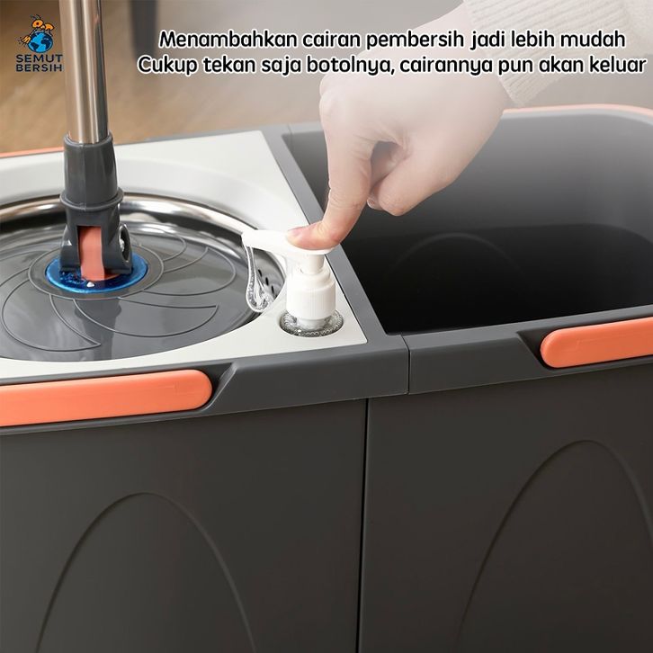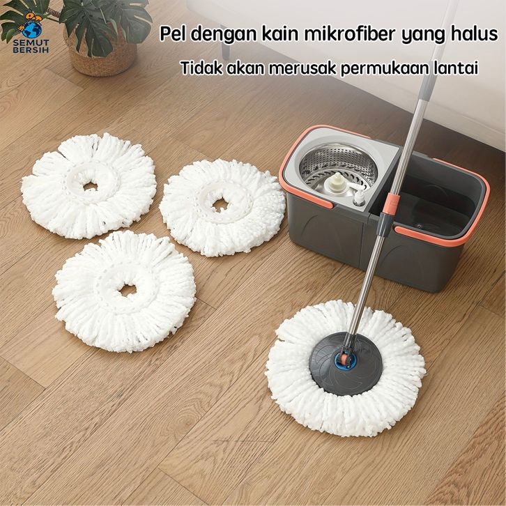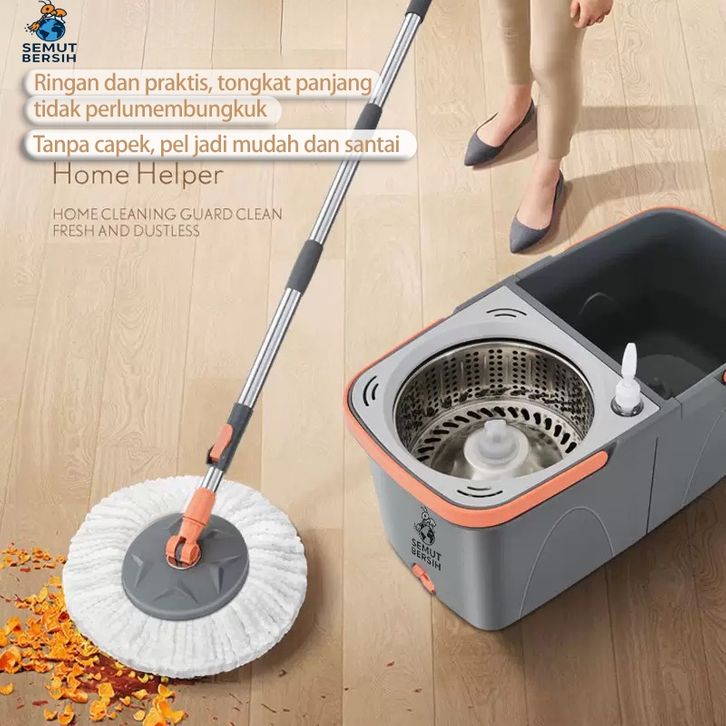 Pel Lantai 2 in 1 Kain Mikrofiber Pembersih Lantai Ember Terpisah Lepas Pasang Pel Abu Orange Rotasi 360° Daya Serap
