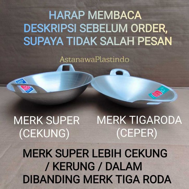 SUPER WAJAN PENGGORENGAN KUALI TIGA RODA MERK SUPER KUWALI CEKUNG ALUMUNIUM TEBAL TIGARODA CEPER ANTI LENGKET