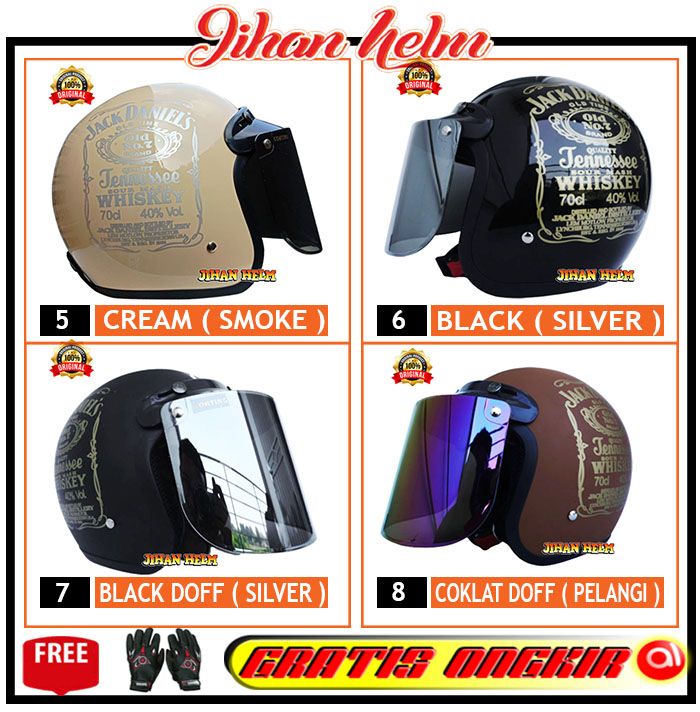 HELM BOGO / HELM RETRO BOGO JACK DANIEL BLACK DOFF TERBARU