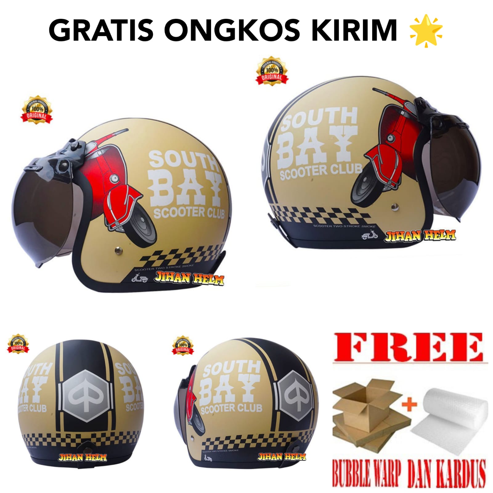 HELM DEWASA / HELM SNI / HELM RETRO BOGO JM SOUTH BAY CREAM DOFF TERMURAH
