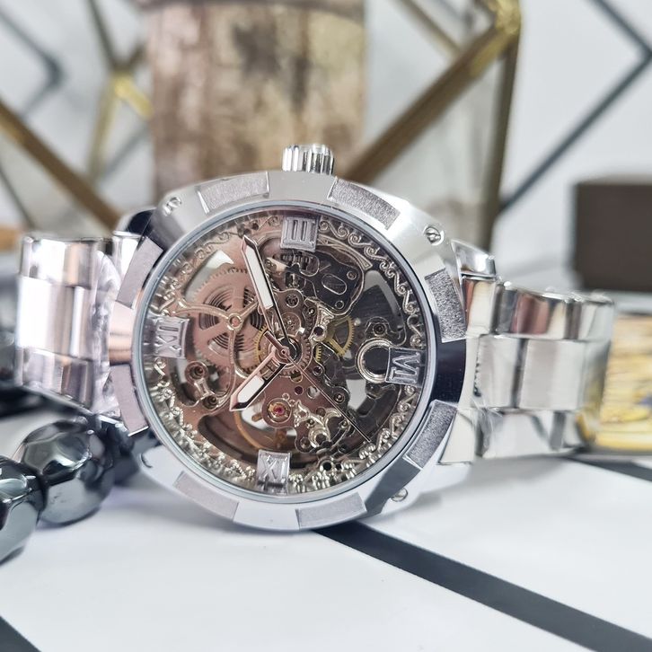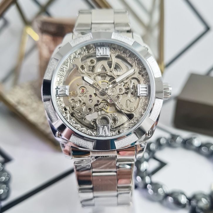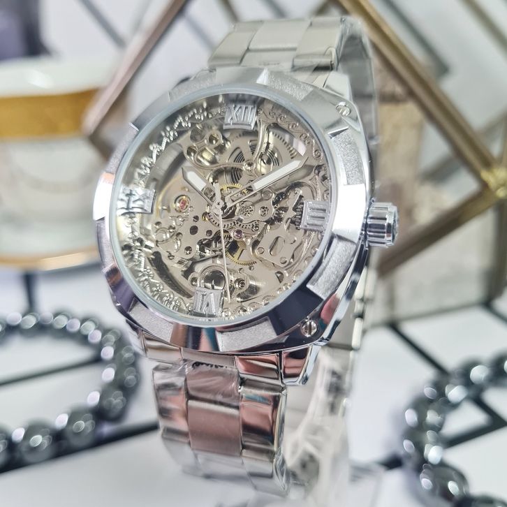 Jam Tangan Pria Original FORSINING Invisible Skeleton Automatic Otomatis Mechanical Mekanik Manual Winding Silver Rantai