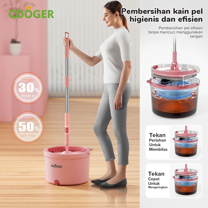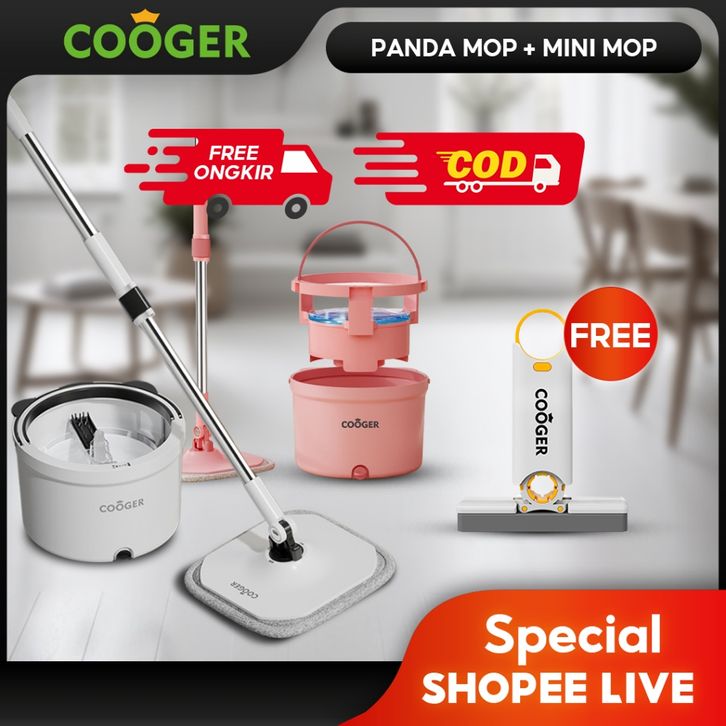 [LIVE COOGER] COOGER Alat Pel Lantai Bentuk Panda Dengan Ember Otomatis Pengering Dan Pembilas Panda Automatic Single Spin Mop