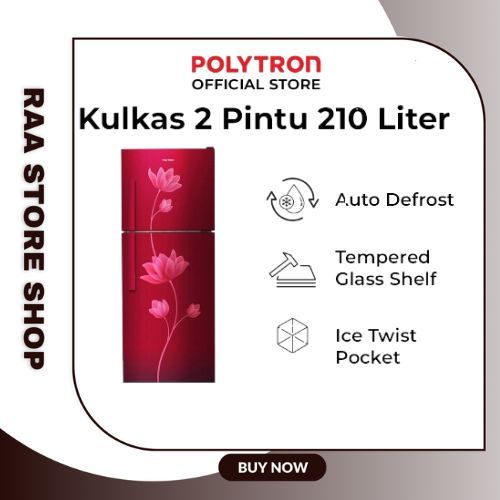 kulkas 2 pintu POLYTRON Kulkas 2 Pintu Belleza Varia 210 liter PRM 21DRX kulkas 2 pintu Tanpa Bunga Es