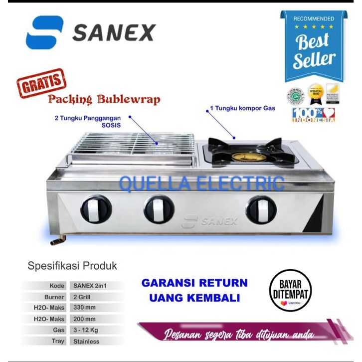 Kompor Pemanggang SANEX SN-KKP 128 2 in 1 Panggangan Sekaligus Ada Kompor 1 Tungku Roti Bakar Sate Ayam Sosis