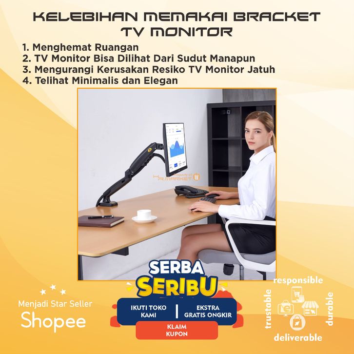 Bracket TV Monitor LED LCD 30 29 27 24 21 19 17 14 Inch 14 - 30 In Dijamin Cocok 6 Arah Universal Breket TV Briket TV