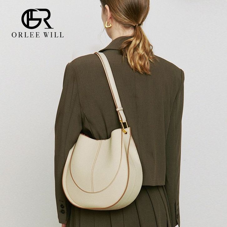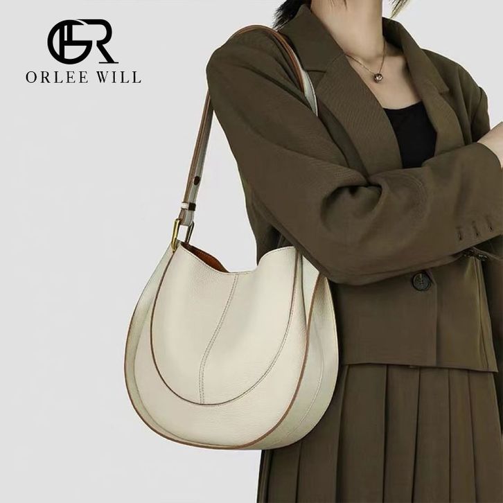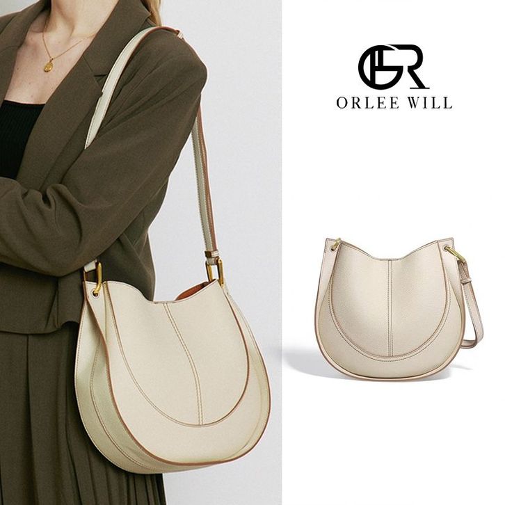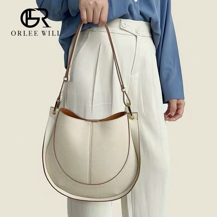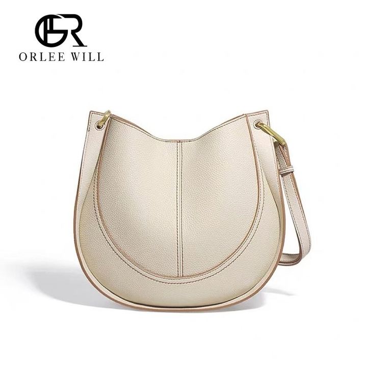 Tas Wanita Selempang Terbaru Kekinian ORLEE WILL Kulit Asli 2 in 1 Resleting cowhide Totebag OL-03 Putih
