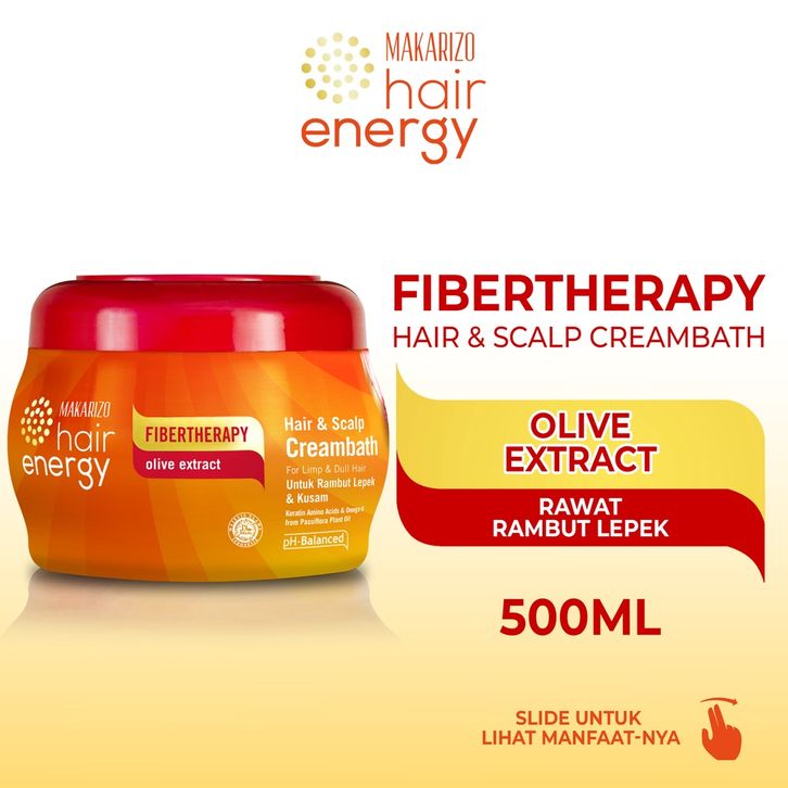 Makarizo Hair Energy Fibertherapy Hair & Scalp Creambath Olive 500 mL / Perawatan Rambut / Hijab
