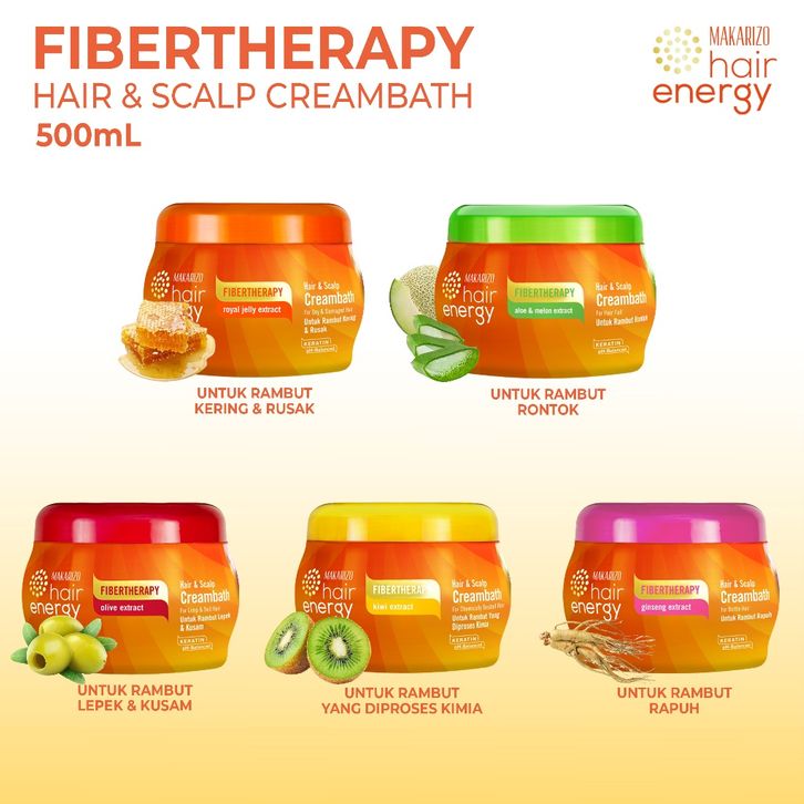 Makarizo Hair Energy Fibertherapy Hair & Scalp Creambath Aloe & Melon 500 mL / Perawatan Rambut Rontok / Hair Care Rambu