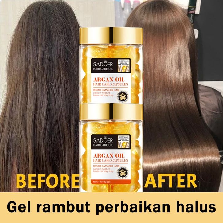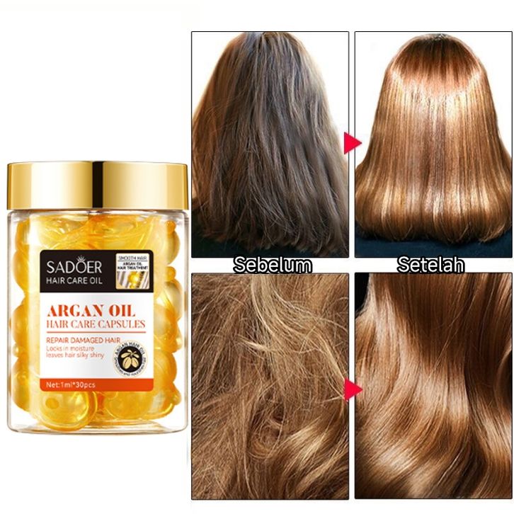 hair vitamin oil (dengan Moroccan Oil) Kemasan Botol 30 kapsul 100% Original vitamin rambut Hair Treatment Rambut Repair