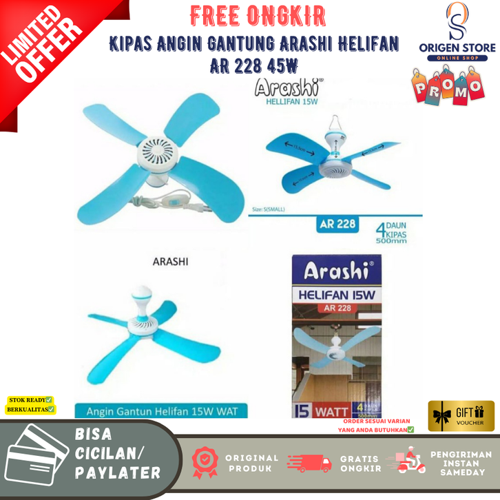 FREE ONGKIR Kipas Angin Gantung Arashi Helifan AR 228 45W