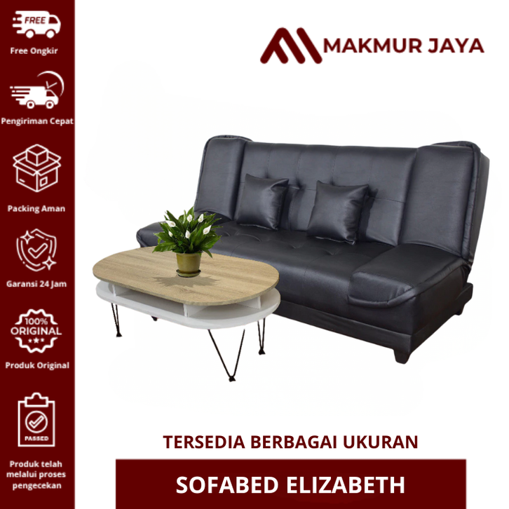 SOFA BED ELIZABETH RUANG TAMU MINIMALIS SOFABED LIPAT GEMBUL LEARHER PU MULTIFUNGSI FULLSET MEJA MURAH TANPA DP
