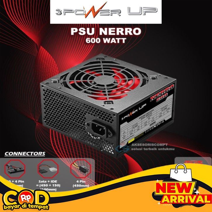 PSU 3 Power Up NERRO 600 with RED FAN 12cm Garansi 1 Tahun
