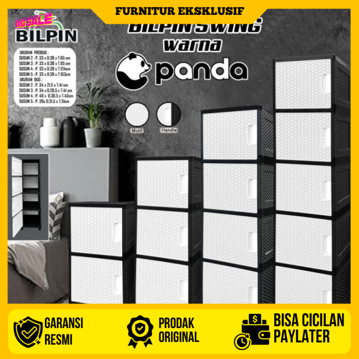 TERMURAH DI Lemari plastik pakaian Laci SWING PANDA Lemari Baju Serbaguna 2 3 4 5 susun MURAH Hitam Putih