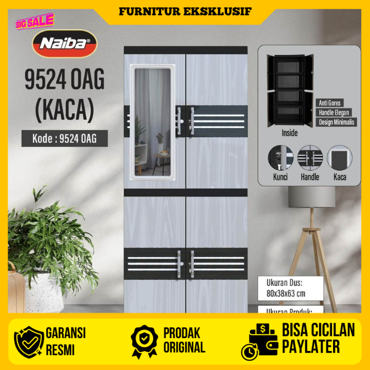 JUMBO LEMARI PAKAIAN PLASTIK NAIBA MSC FIT CERMIN SUSUN 4 MODERN - FULL KUNCI