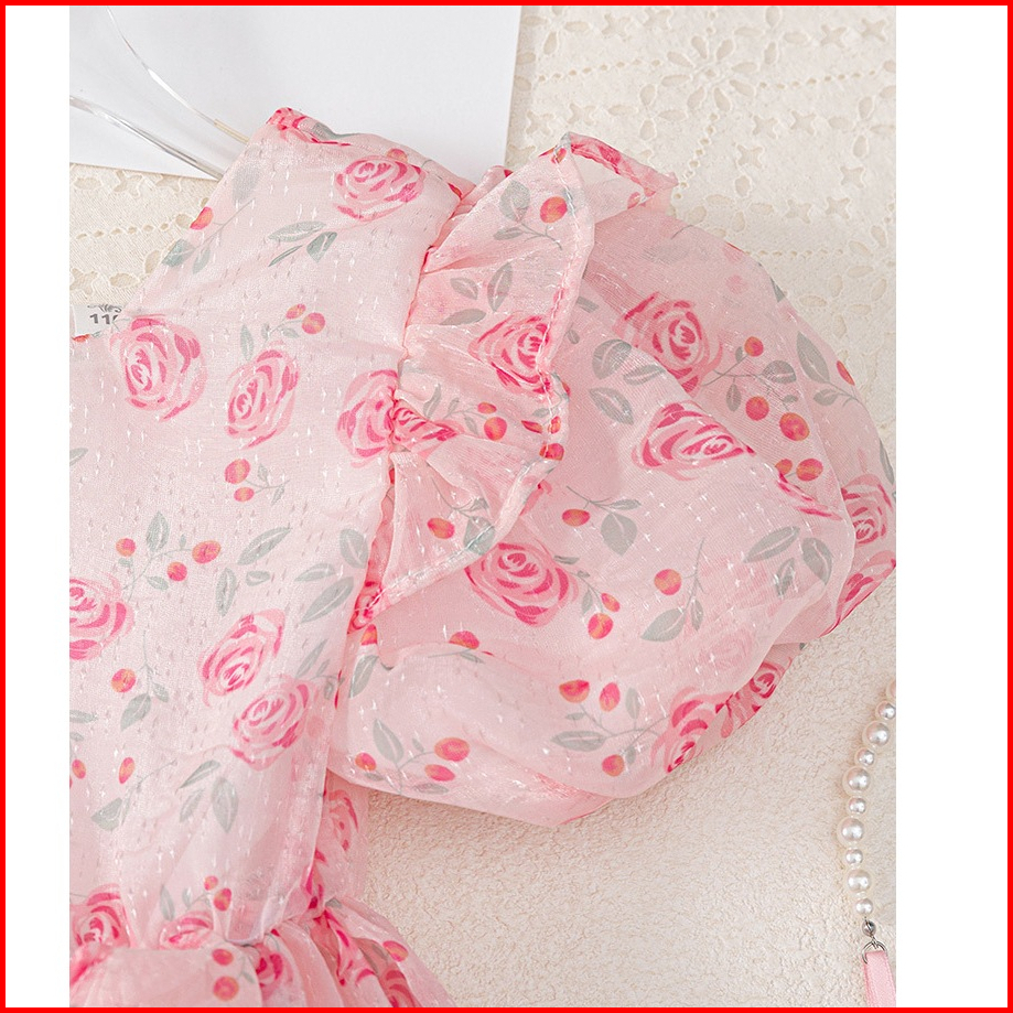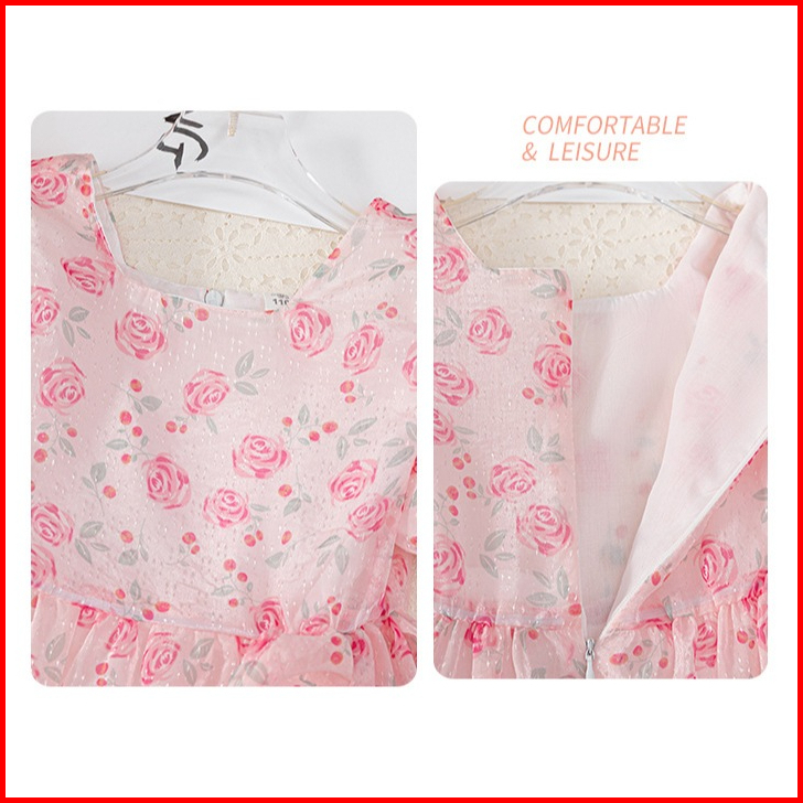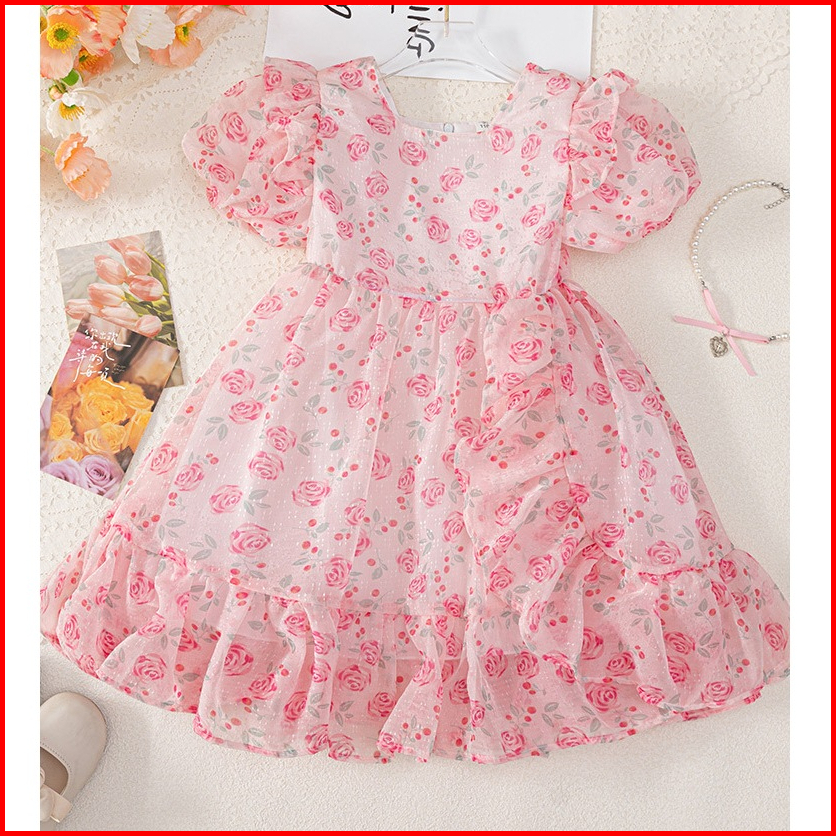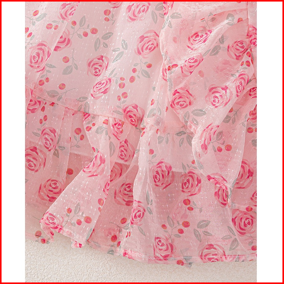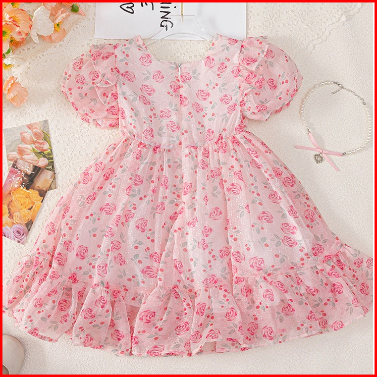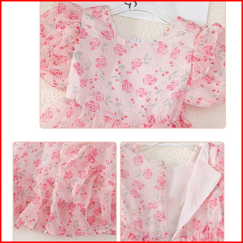 Meandboss Dr99 Dress Anak Perempuan Gaun Pesta Sifon Floral Bunga Ruffle Youra
