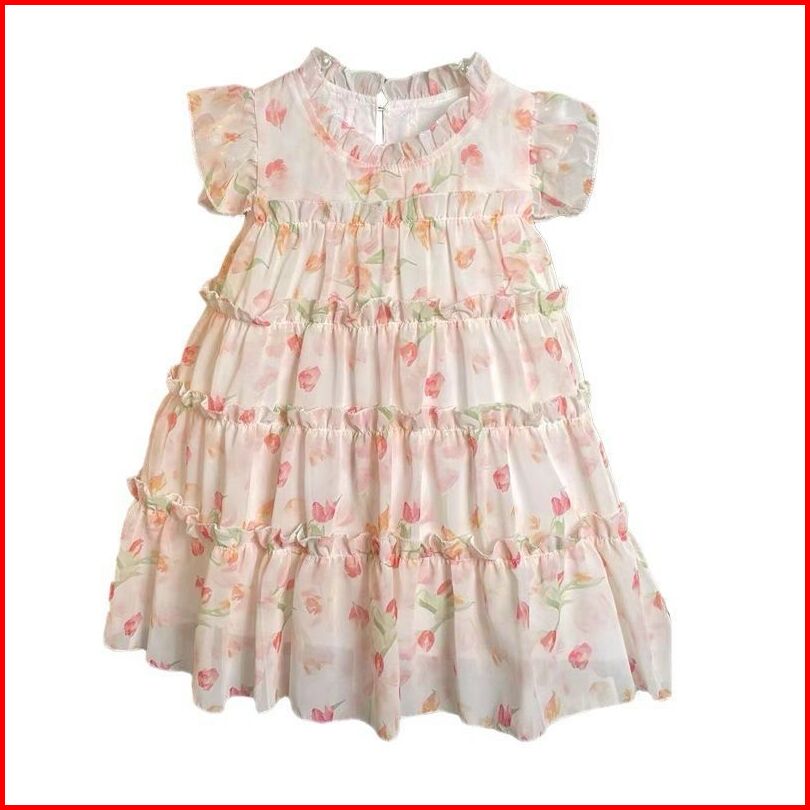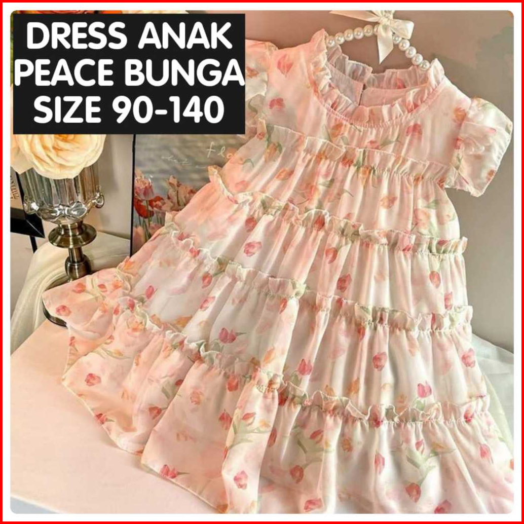 Loli-jkt Bd- 528 Dress Anak Cewek Peach Bunga Tali Size 90-140