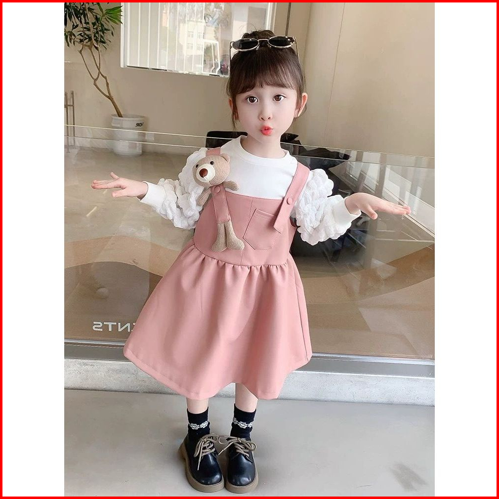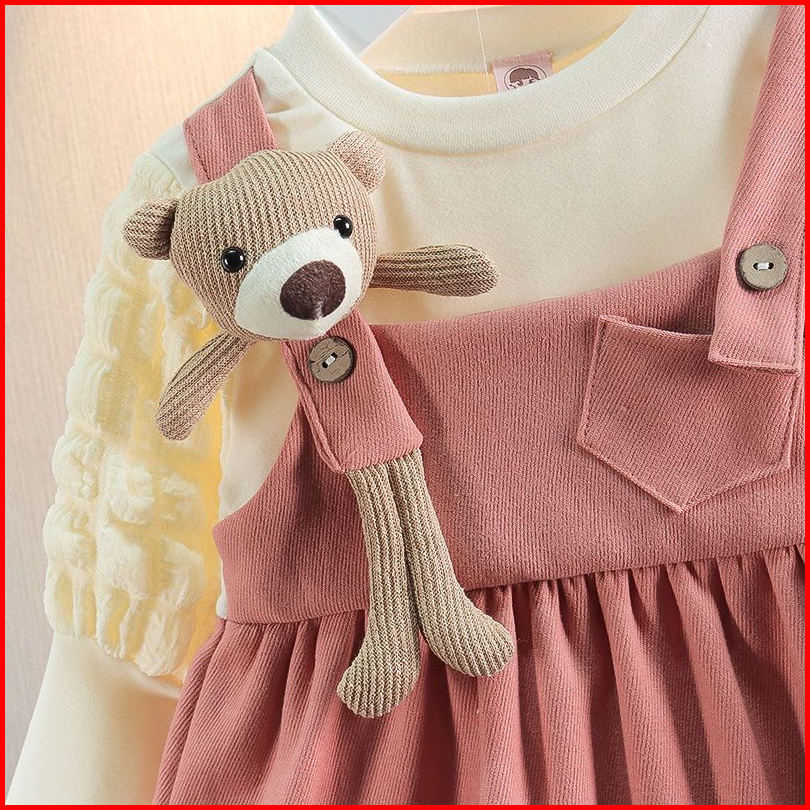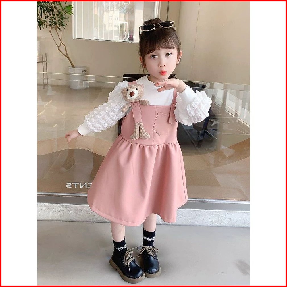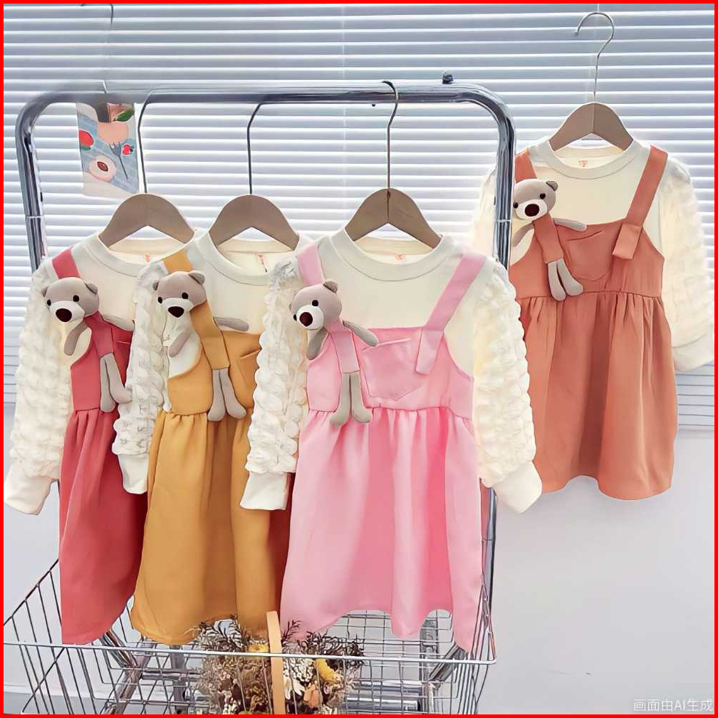 4-8tahun Dress Anak Perempuan Tanggung Katun Fashion Lengan Panjang Motif Jagung Kekinian