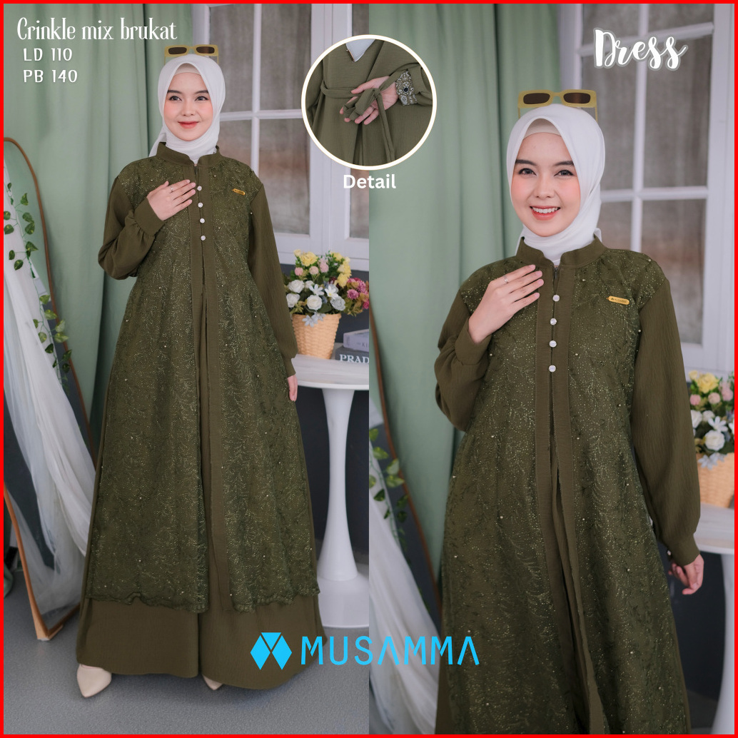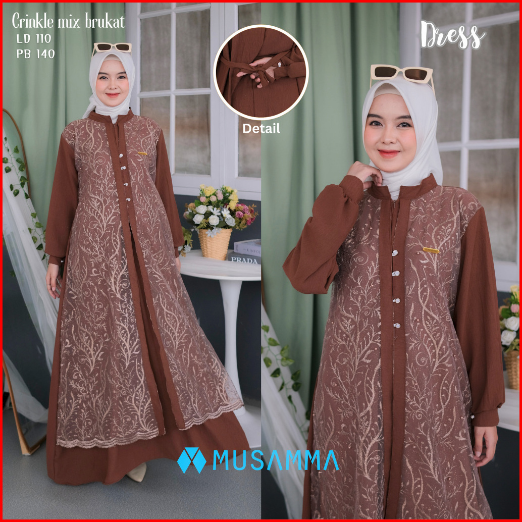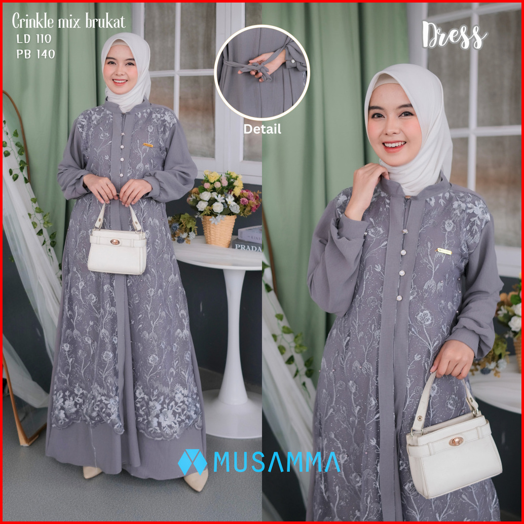 Aishwa Dress - Gamis Crincle Premium Mix Brukat Tile Malika Gamis Elegan Terbaru