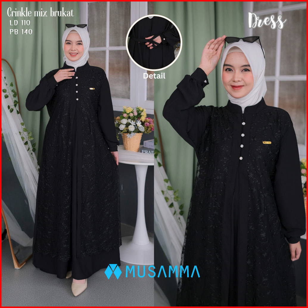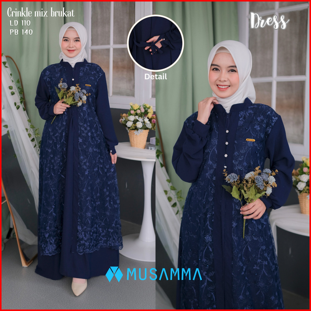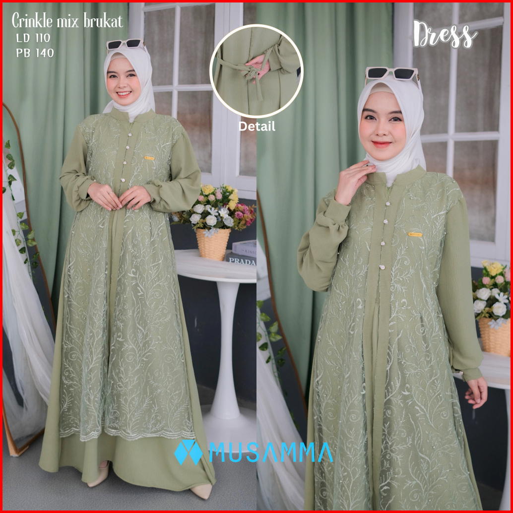 Aishwa Dress - Gamis Crincle Premium Mix Brukat Tile Malika Gamis Elegan Terbaru