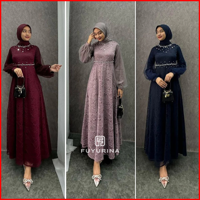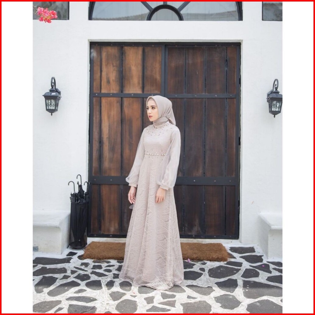 Dress Exclusive Gamis Nadine Lebaran Terbaru Dress Kondangan Gamis Brukat Maxi Pesta Lamaran Tunangan Kekinian Seragam B