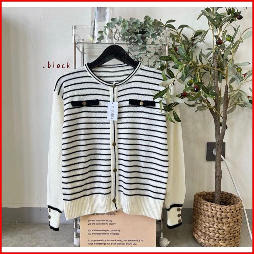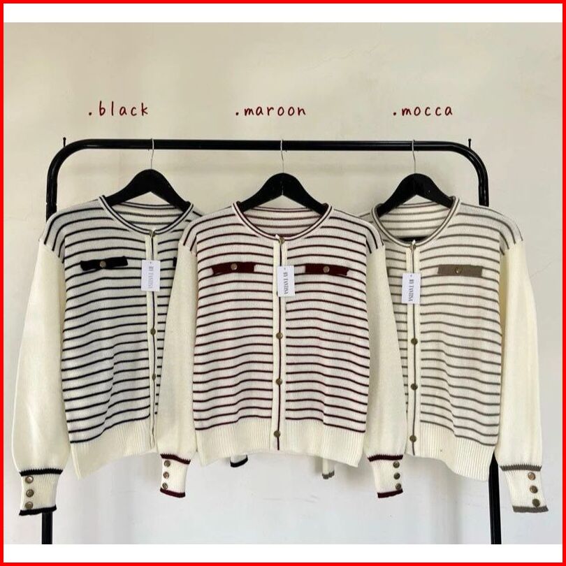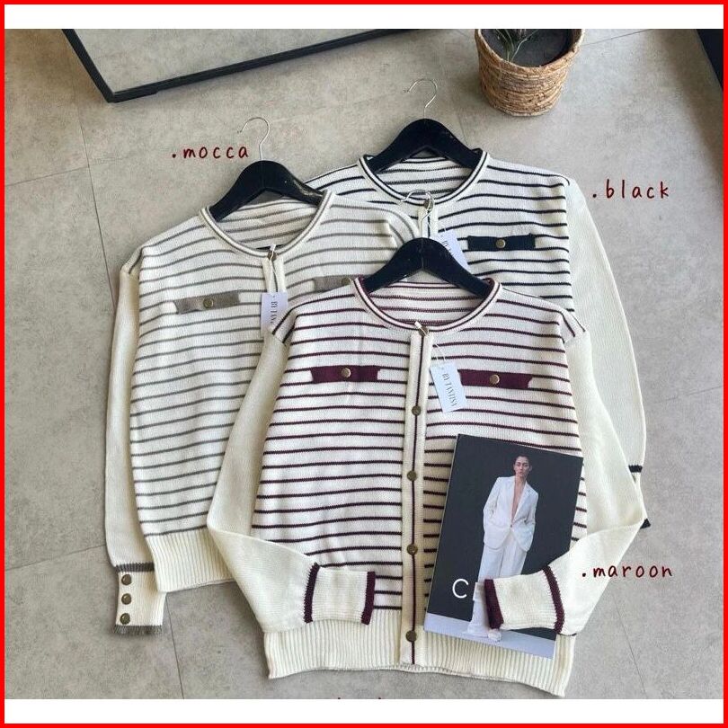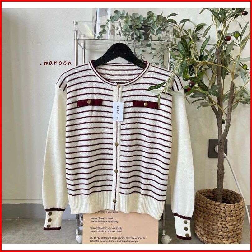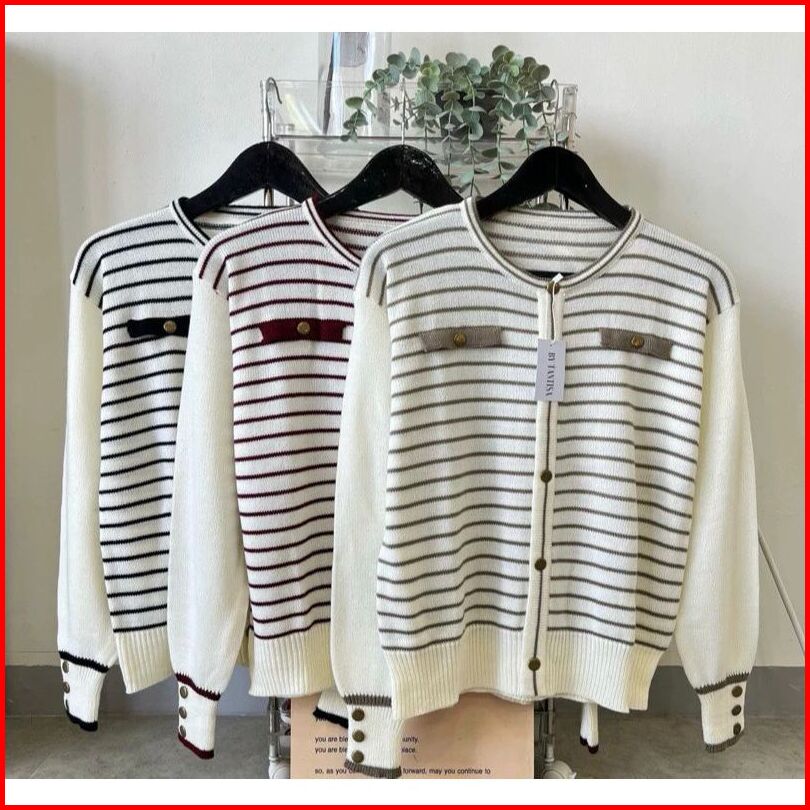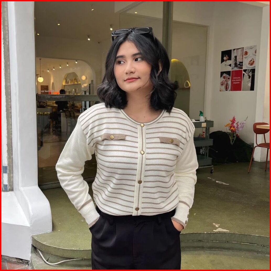 Wanda Sweater Atasan Rajut Wanita Motif Garis Korean Look Style