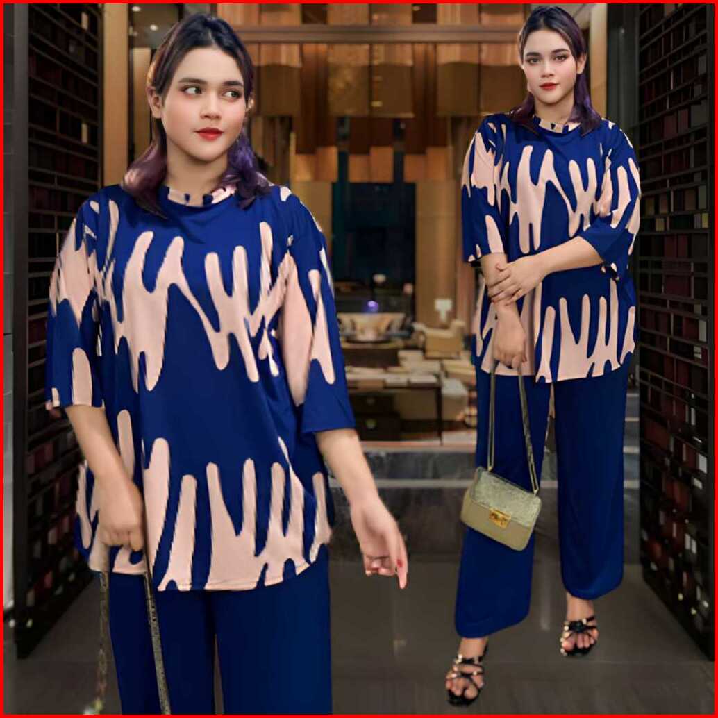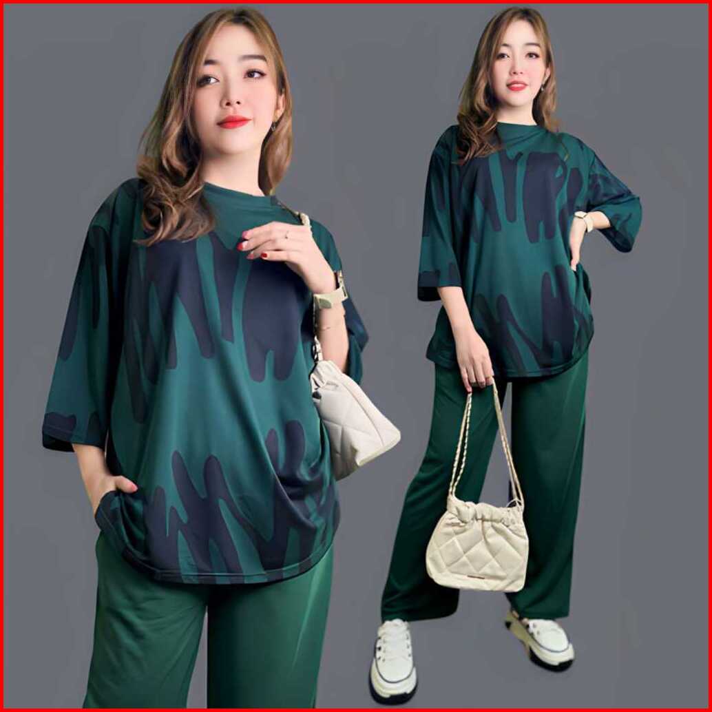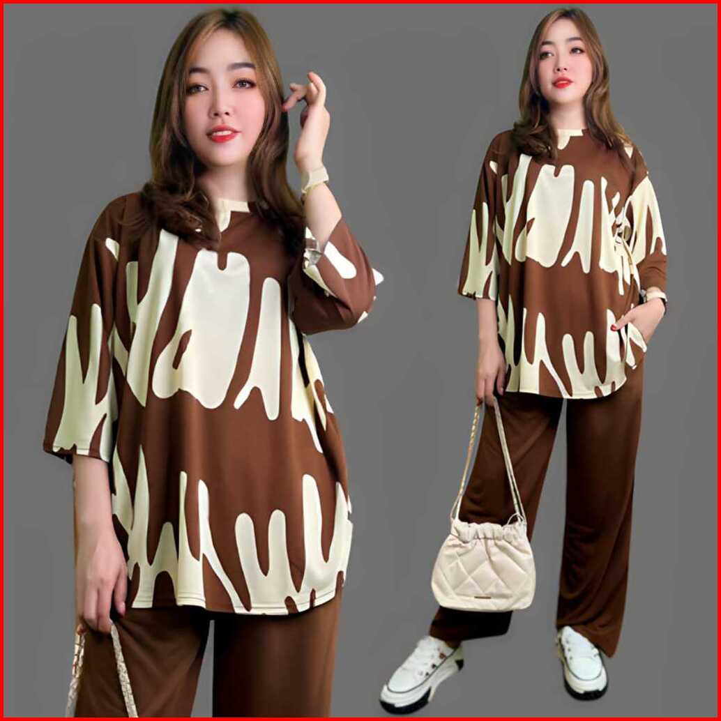 Abrina Setelan Wanita Celana Lurus Dan Atasan Oval Belahan Kiri Dan Kanan Oversize Wanita Celana Lurus Karet Kantor Kaos