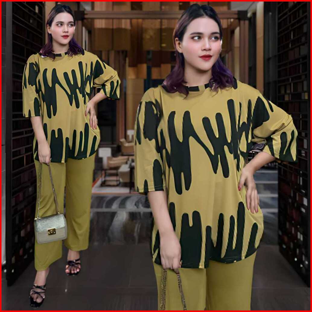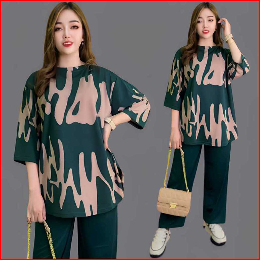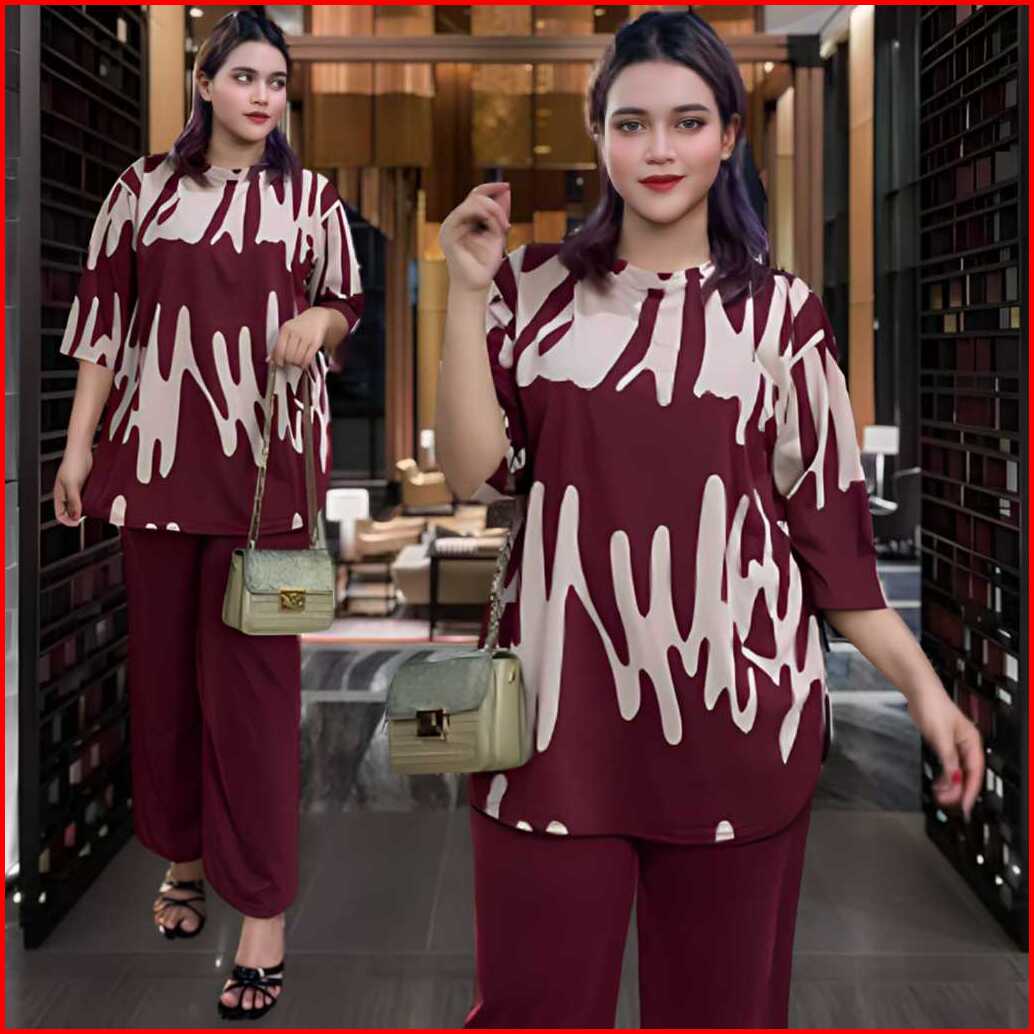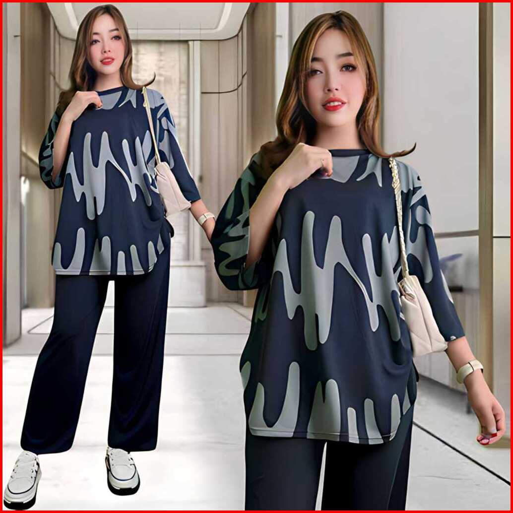 Abrina Setelan Wanita Celana Lurus Dan Atasan Oval Belahan Kiri Dan Kanan Oversize Wanita Celana Lurus Karet Kantor Kaos