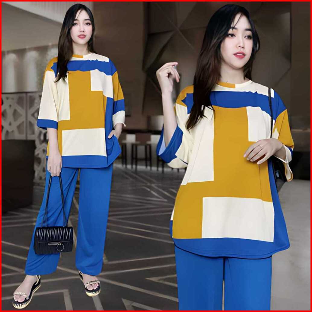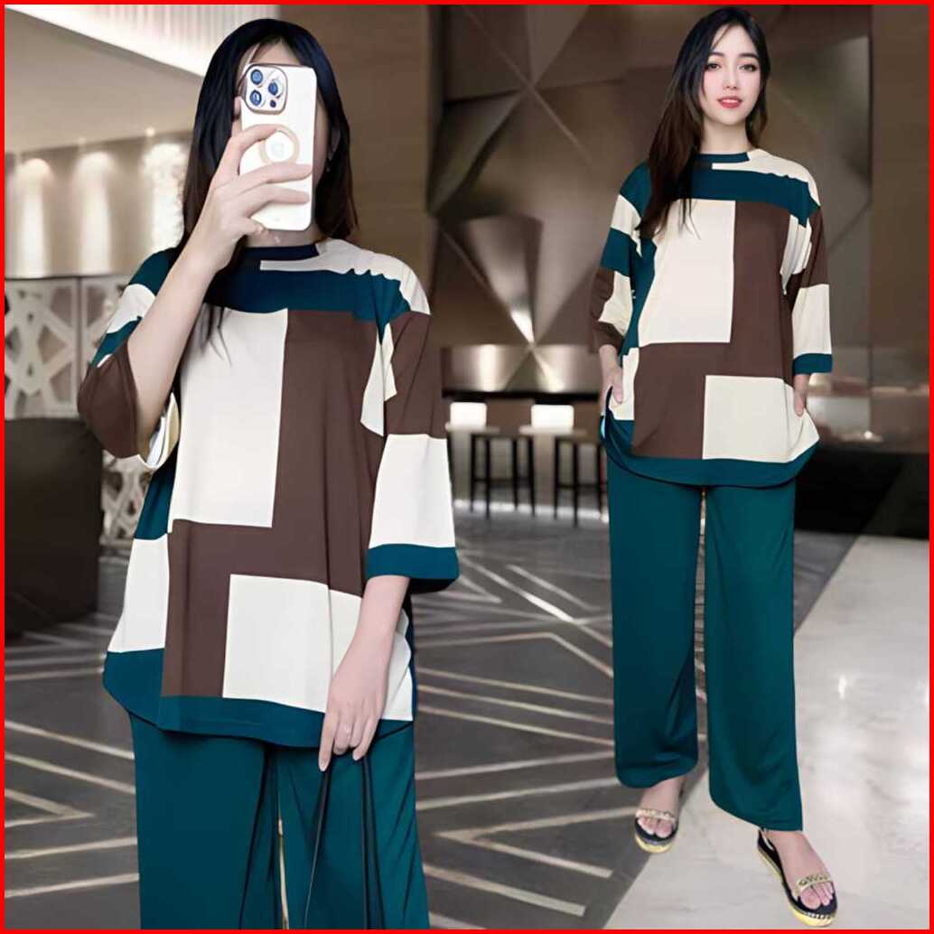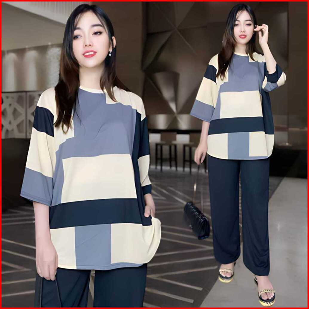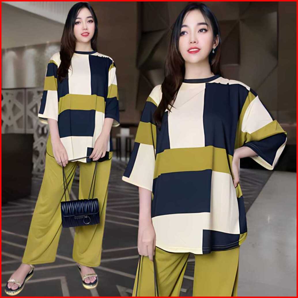 Myesha Ld 120 Ayda Ld 140 Setelan Wanita Celana Lurus Dan Atasan Oval Belahan Kiri Dan Kanan Oversize Wanita Celana Luru