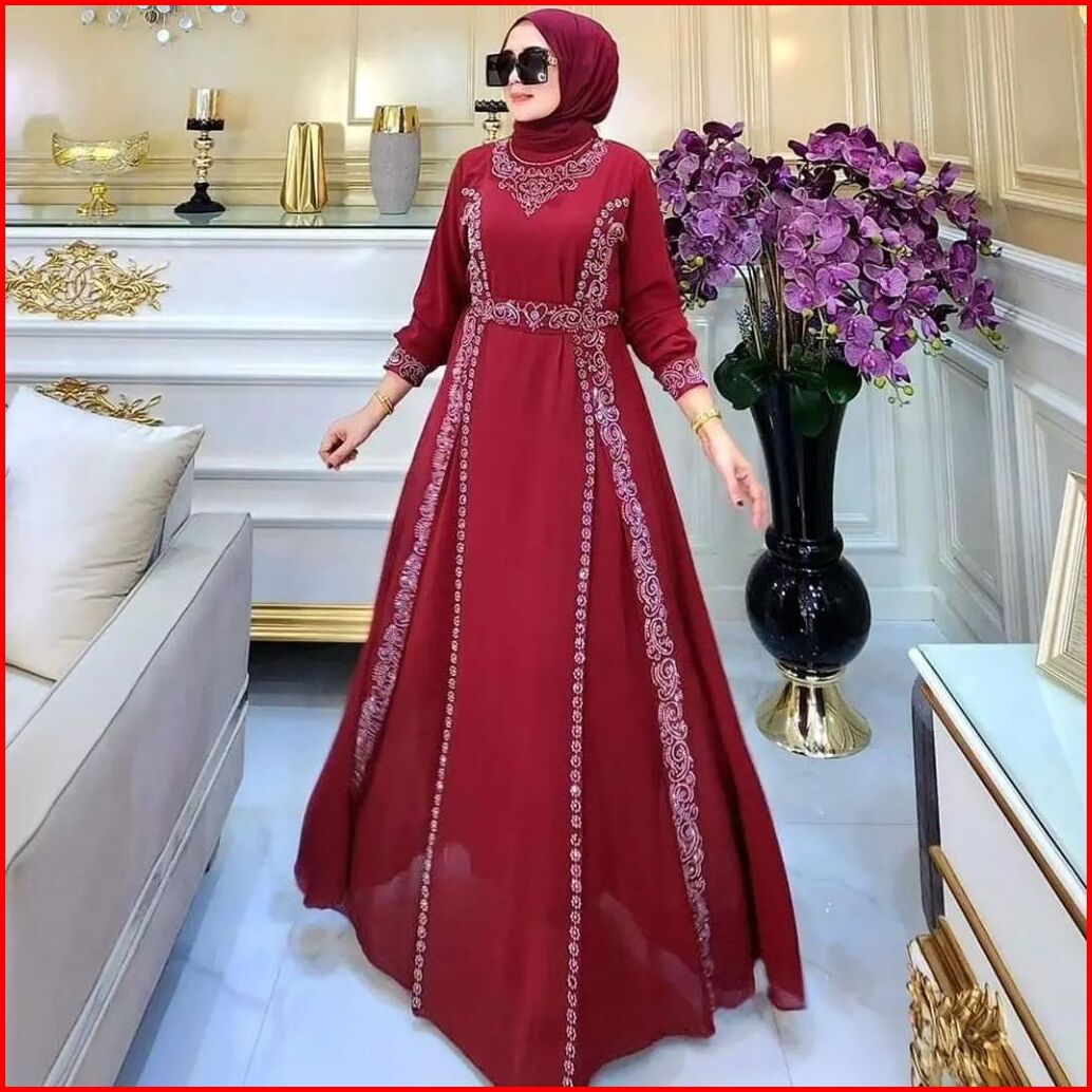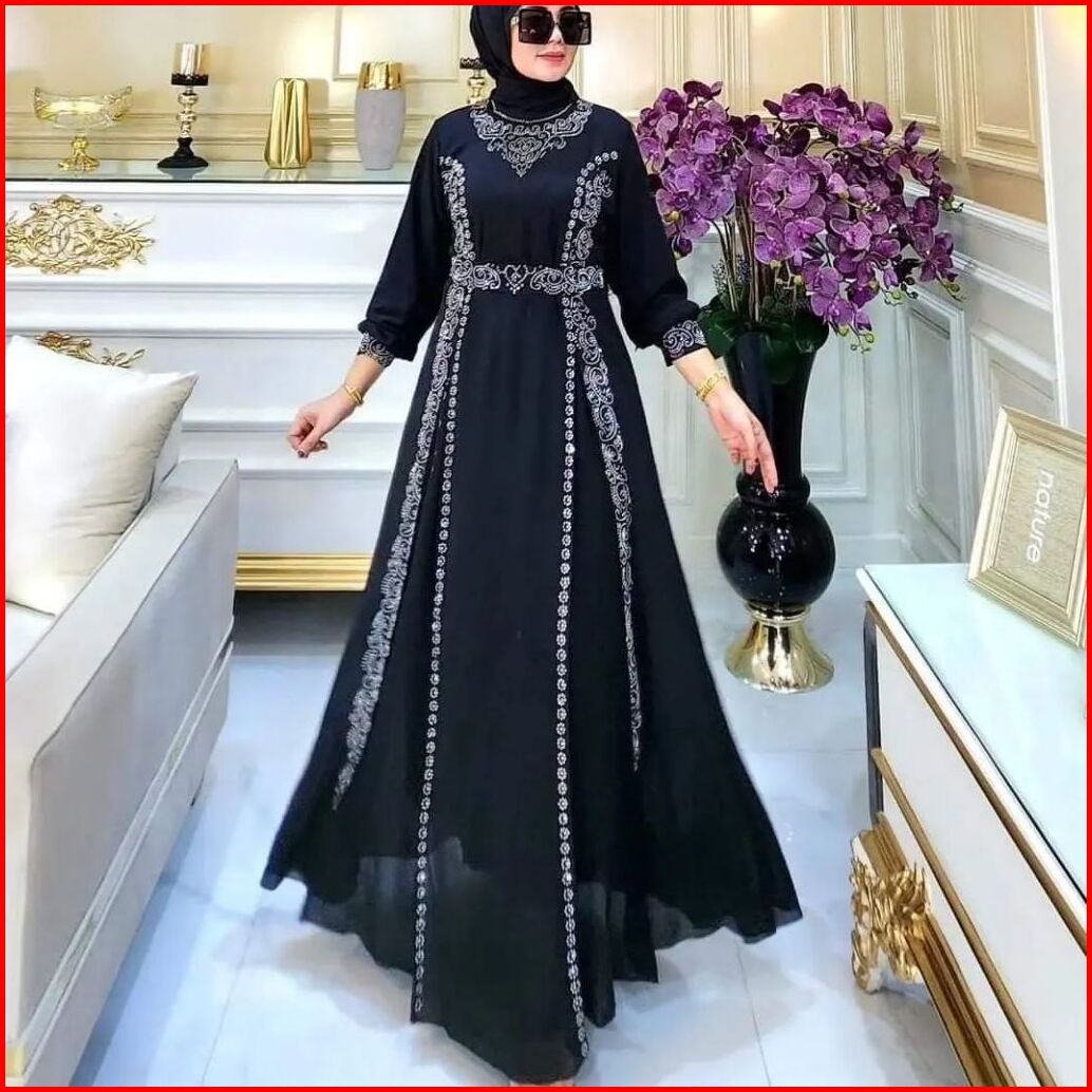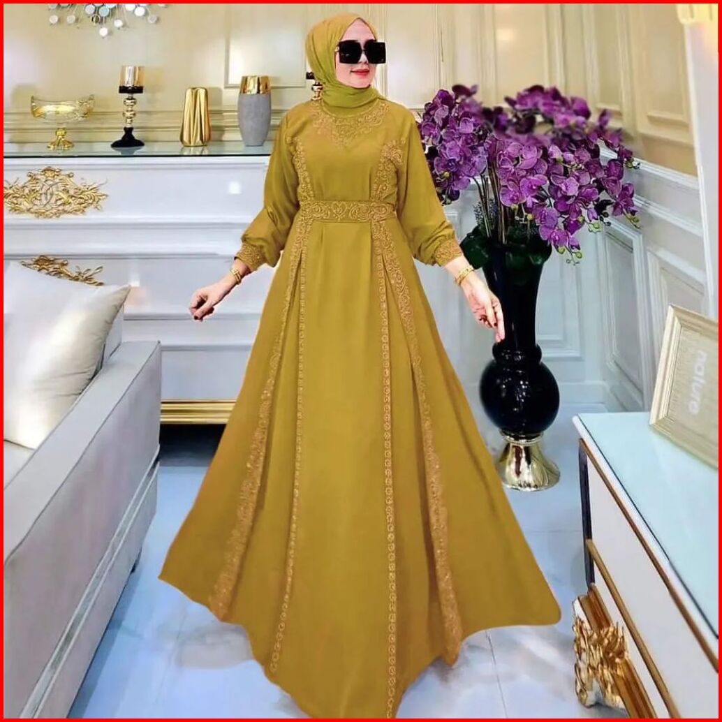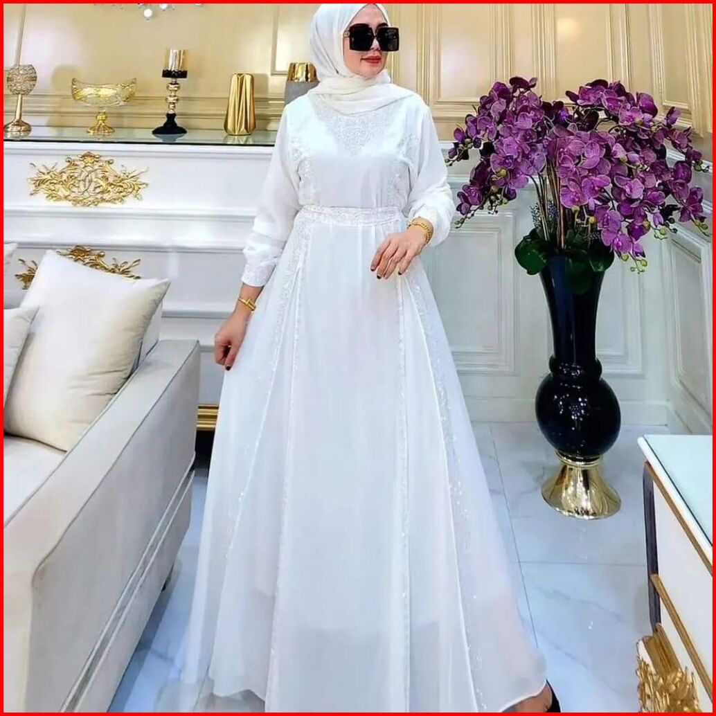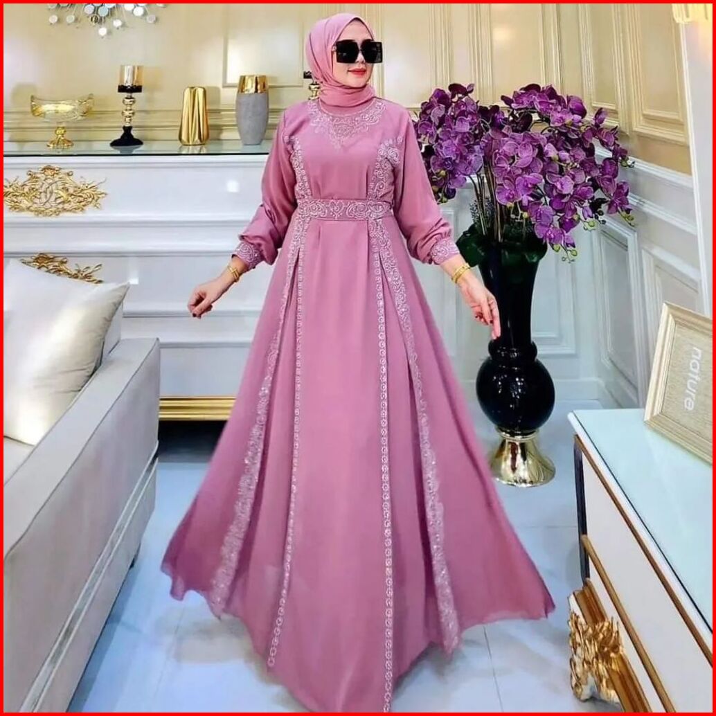 Terbaru Violla Dress Bahan Cerutty Babydoll Aksen Swarovsky Gamis Pesta Mewah Elegan Baju Kondangan Wanita Kekinian Elf