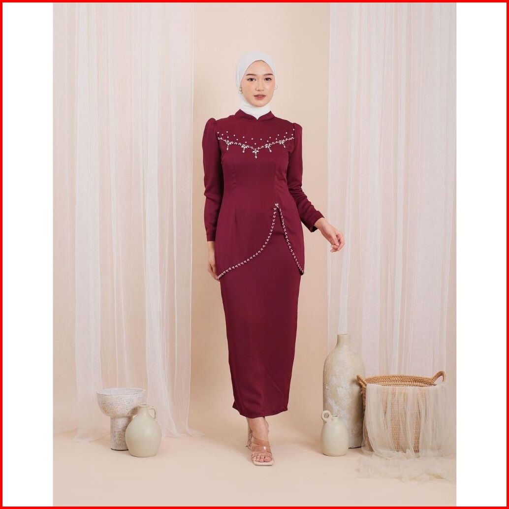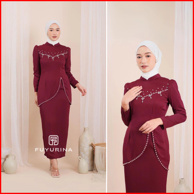 New Oneset Felicya Baju Kurung Melayu Dress Pesta Setelan Wanita Baju Kondangan Kekinian Full Payet 2024