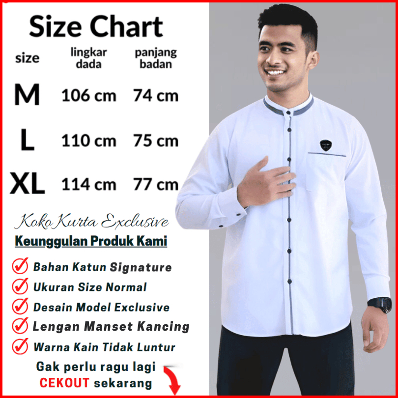 Baju Koko Putih Lengan Panjang Kemko Hadroh Kemeja Koko Dewasa Kurta Taqwa Baju Muslim Pria Kekinian