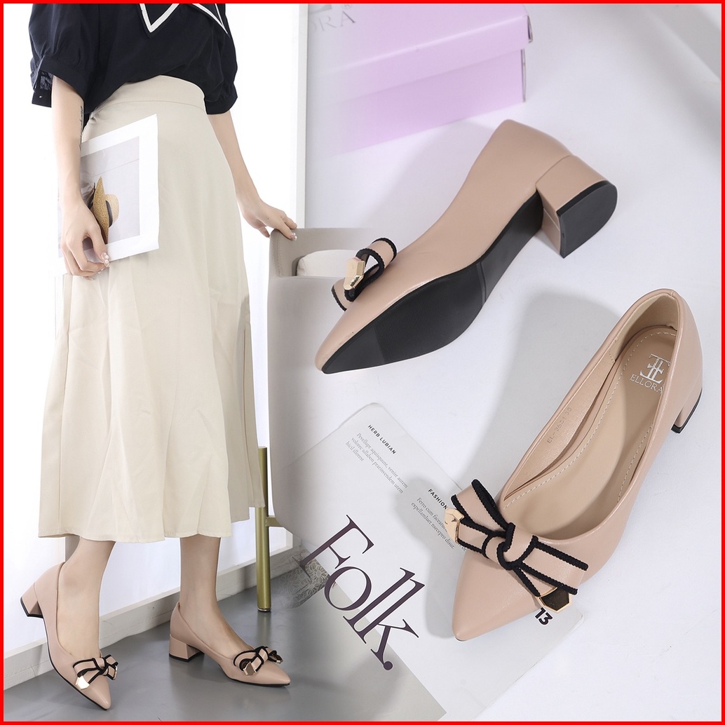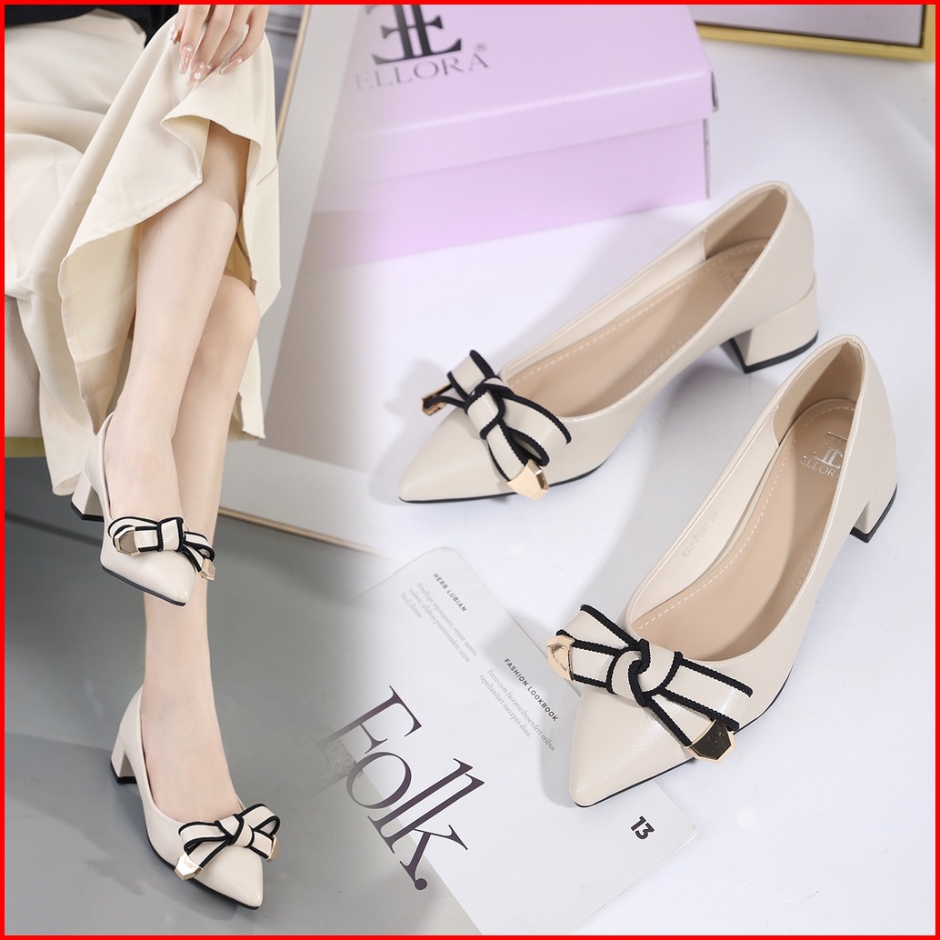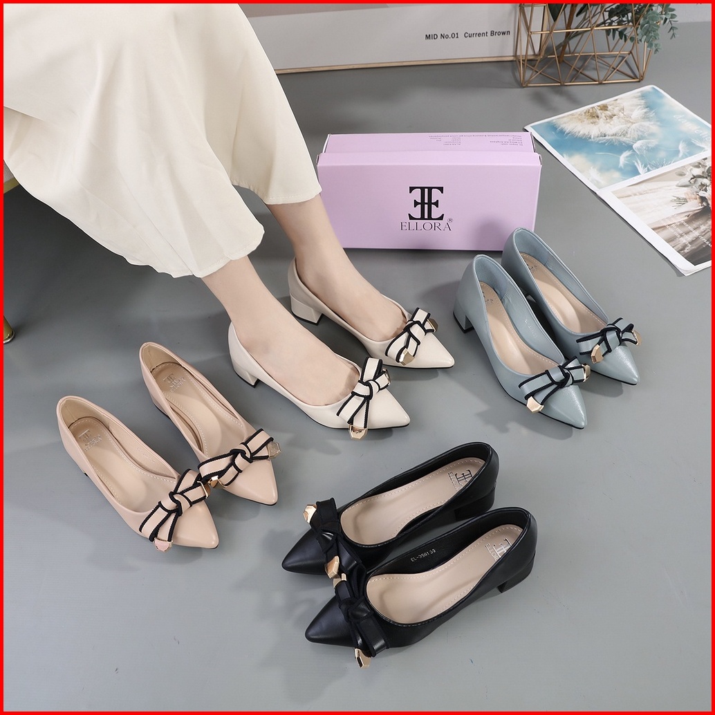 Ellora El-3551 Sepatu Kerja Wanita Chunky Heels Hak Tahu 3.5cm Sintetis Import