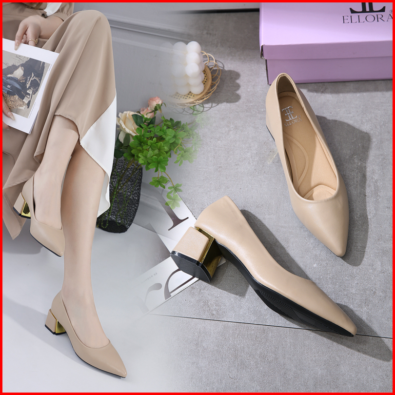 Ellora El-3100 Sepatu Kerja Wanita Hak Chunky Heels Hak Tahu 5cm