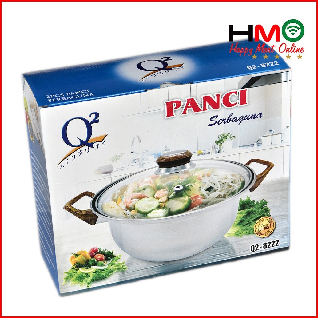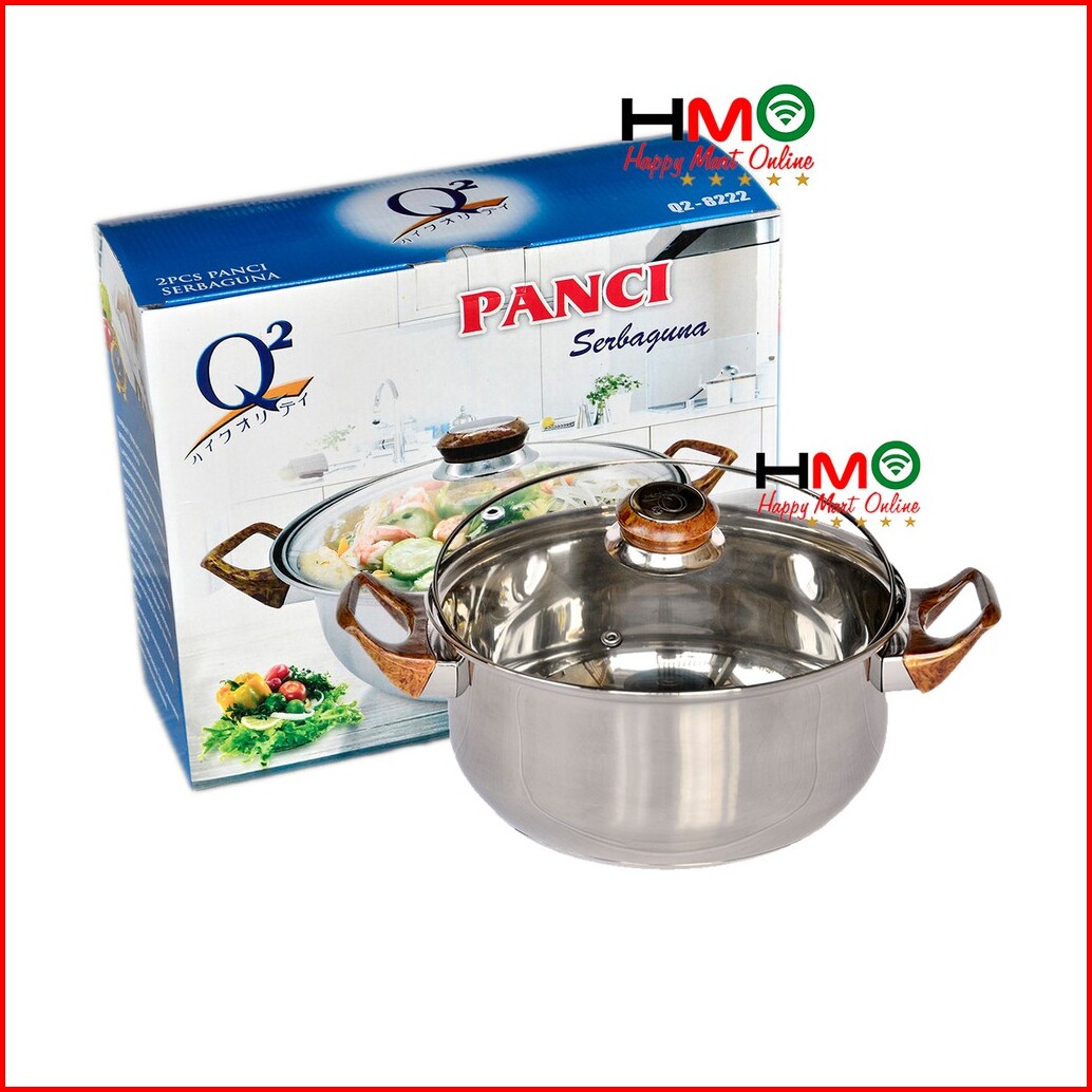 Panci Kuah Serbaguna Q2-8222 Tutup Kaca Stainless Steel Q2 8222