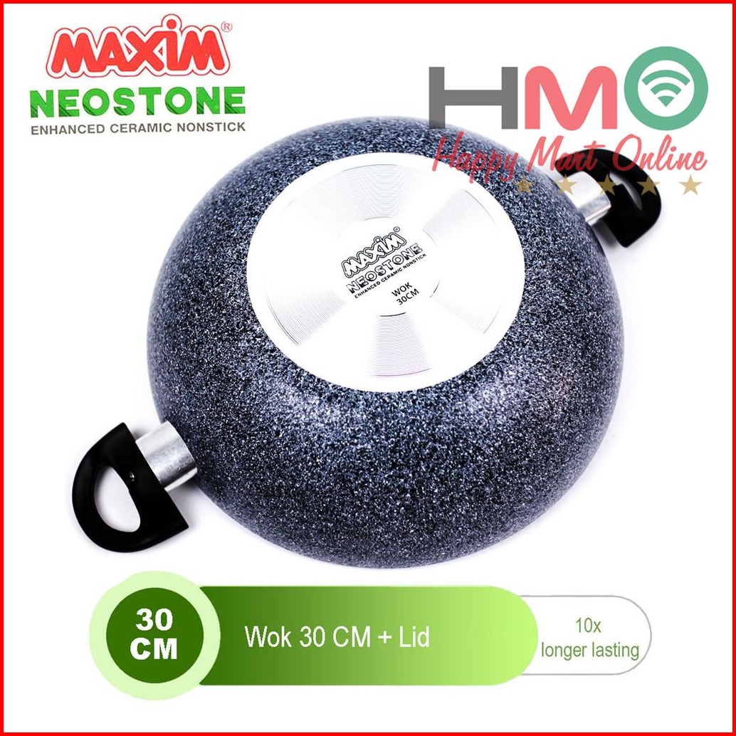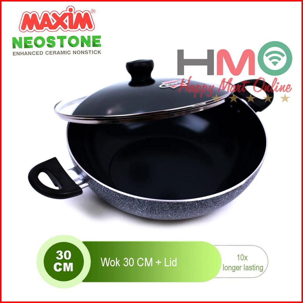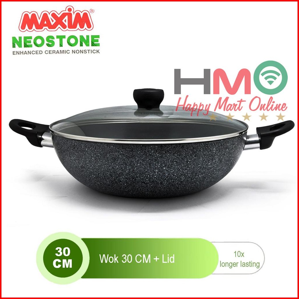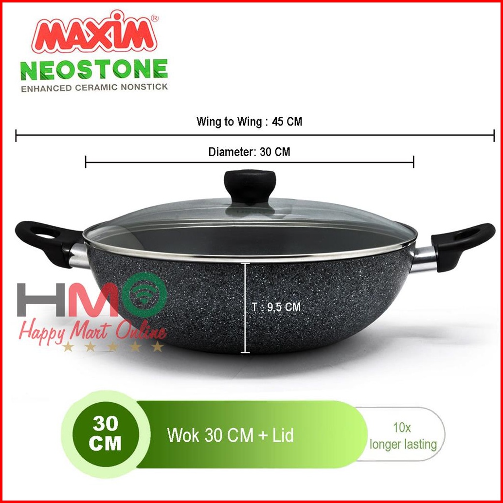 Panci Wajan Maxim Neostone Wok 30 Cm Glass Cover Tutup Kaca Anti Lengket