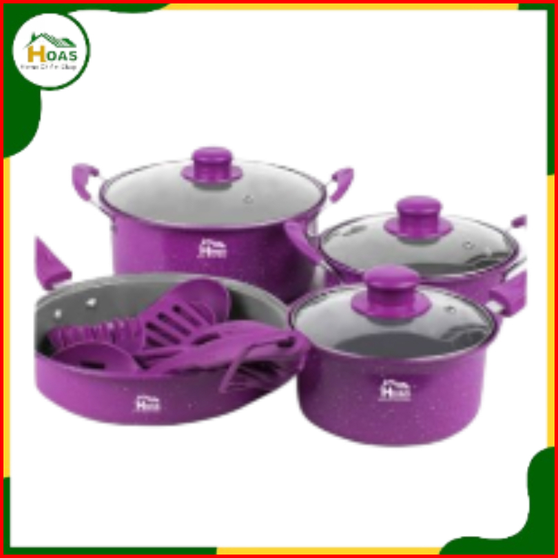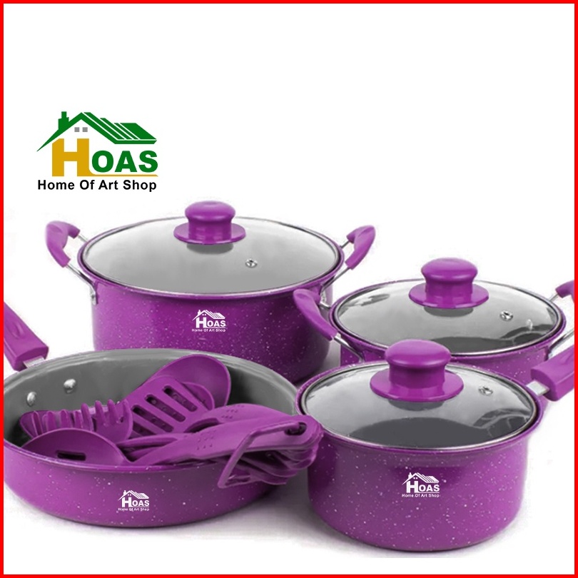 Hoas Panci 13 Set Cookware Panci Set Anti Lengket Panci Sup Panci Set Tutup Kaca Free Spatula 6 Pcs Panci Wajan Teflon E