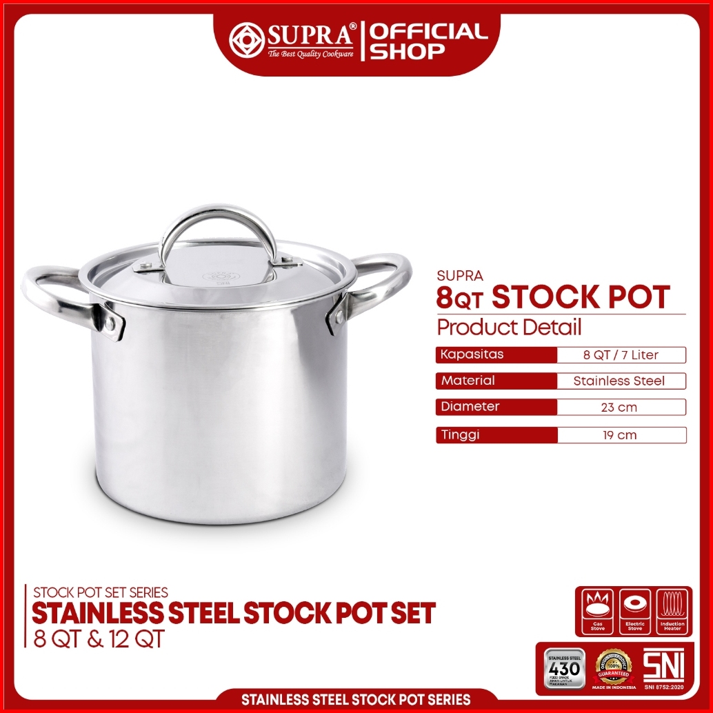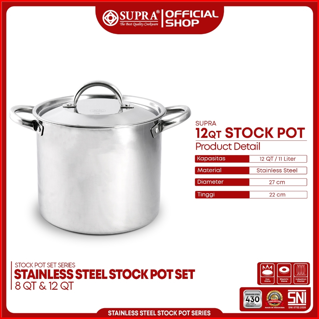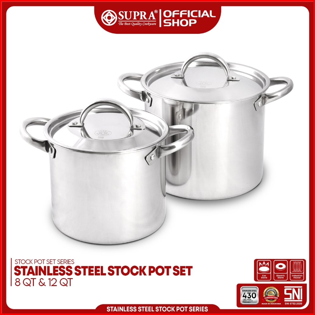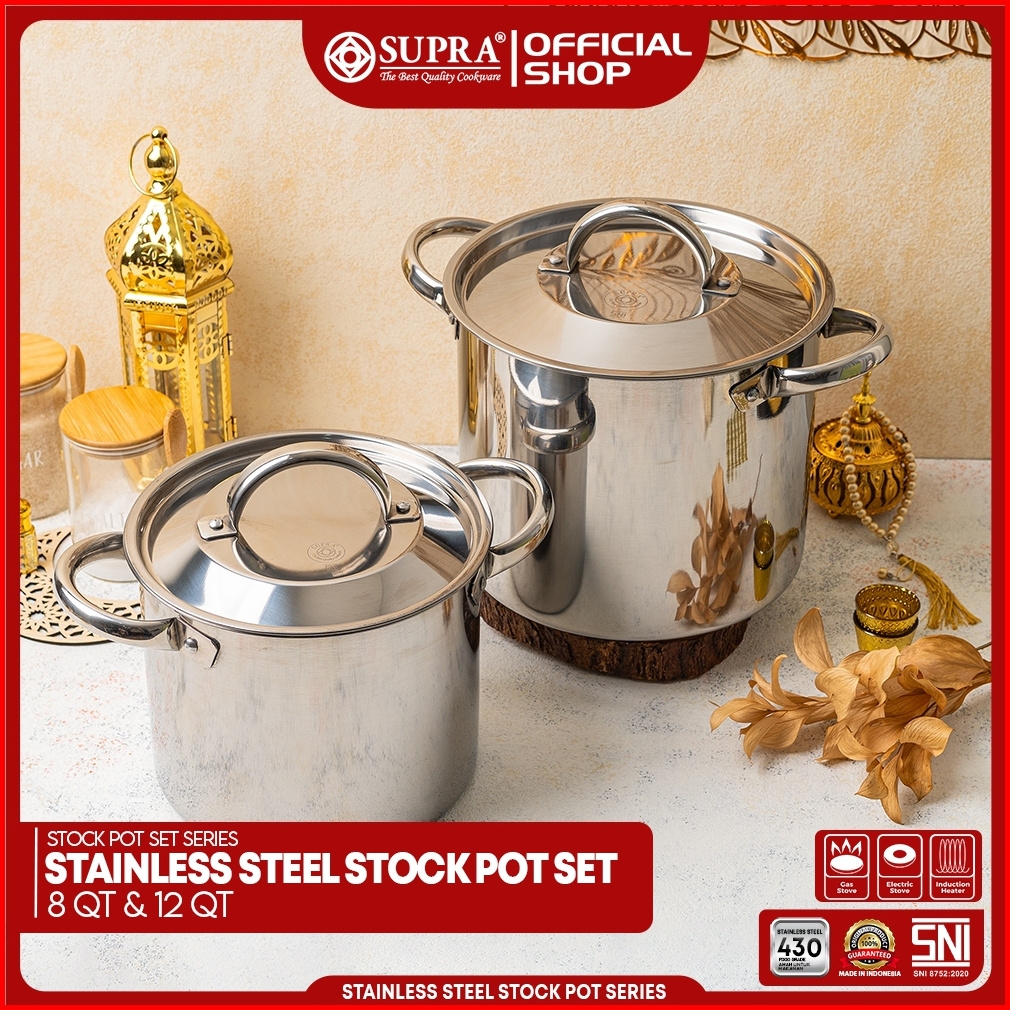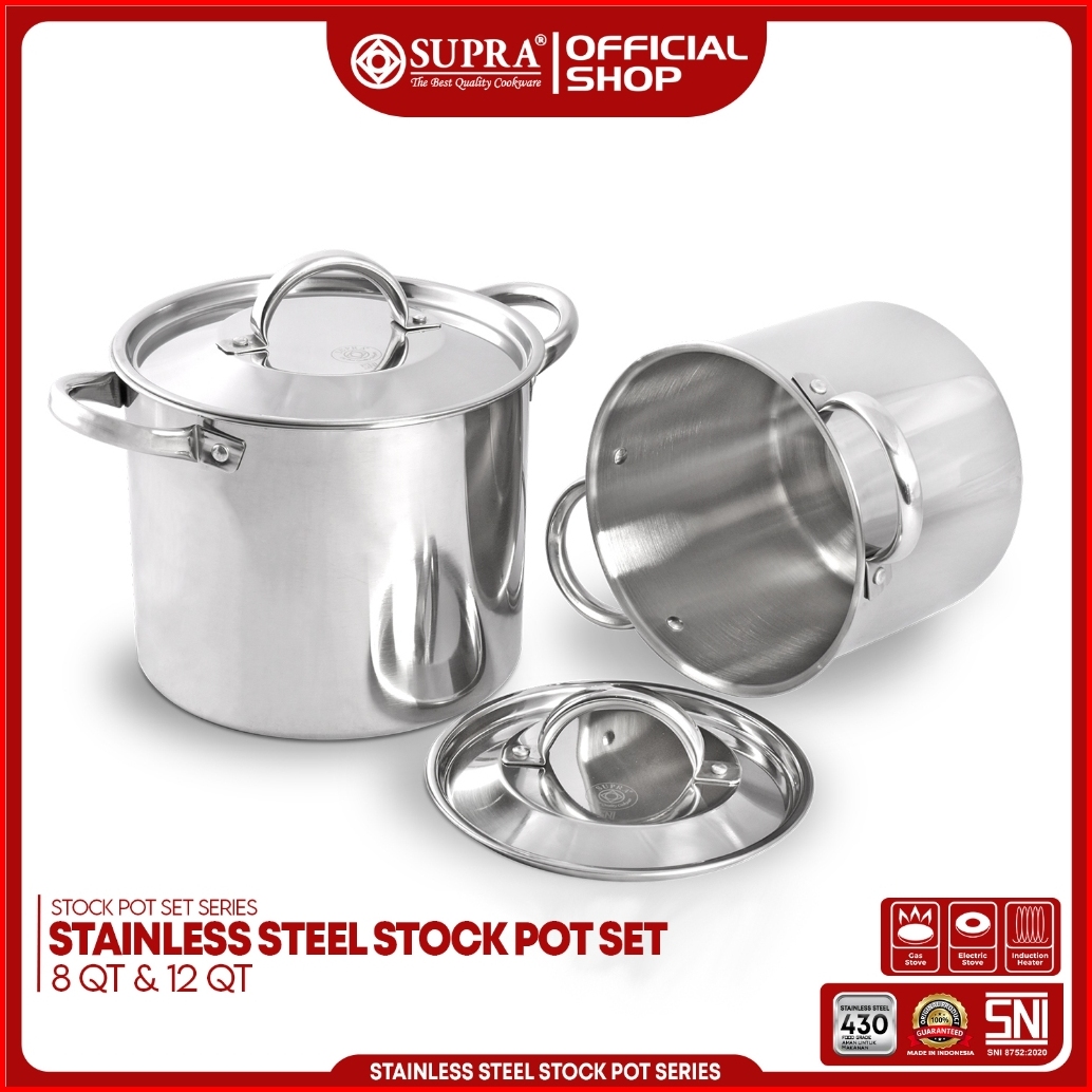 Supra Panci Stainless Steel 8 Qt Dan 12 Qt Stock Pot