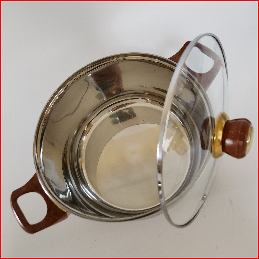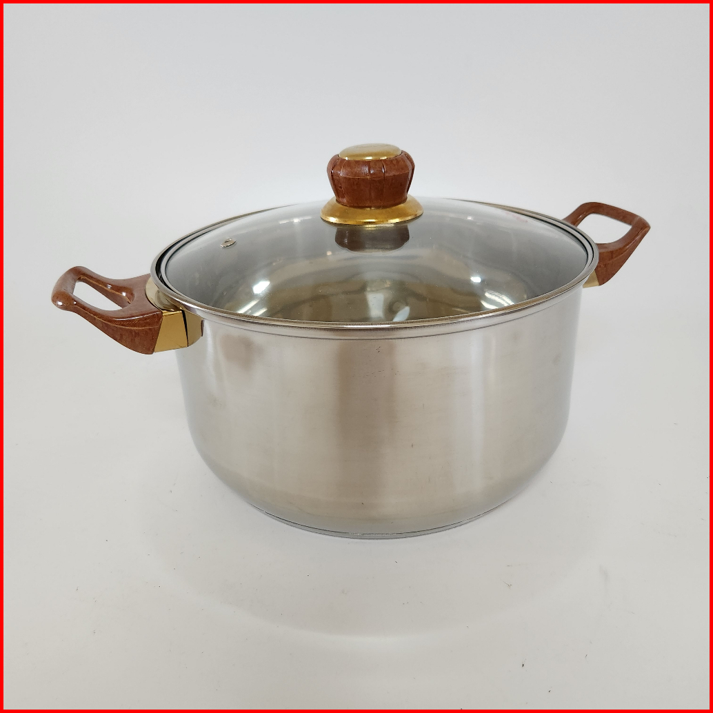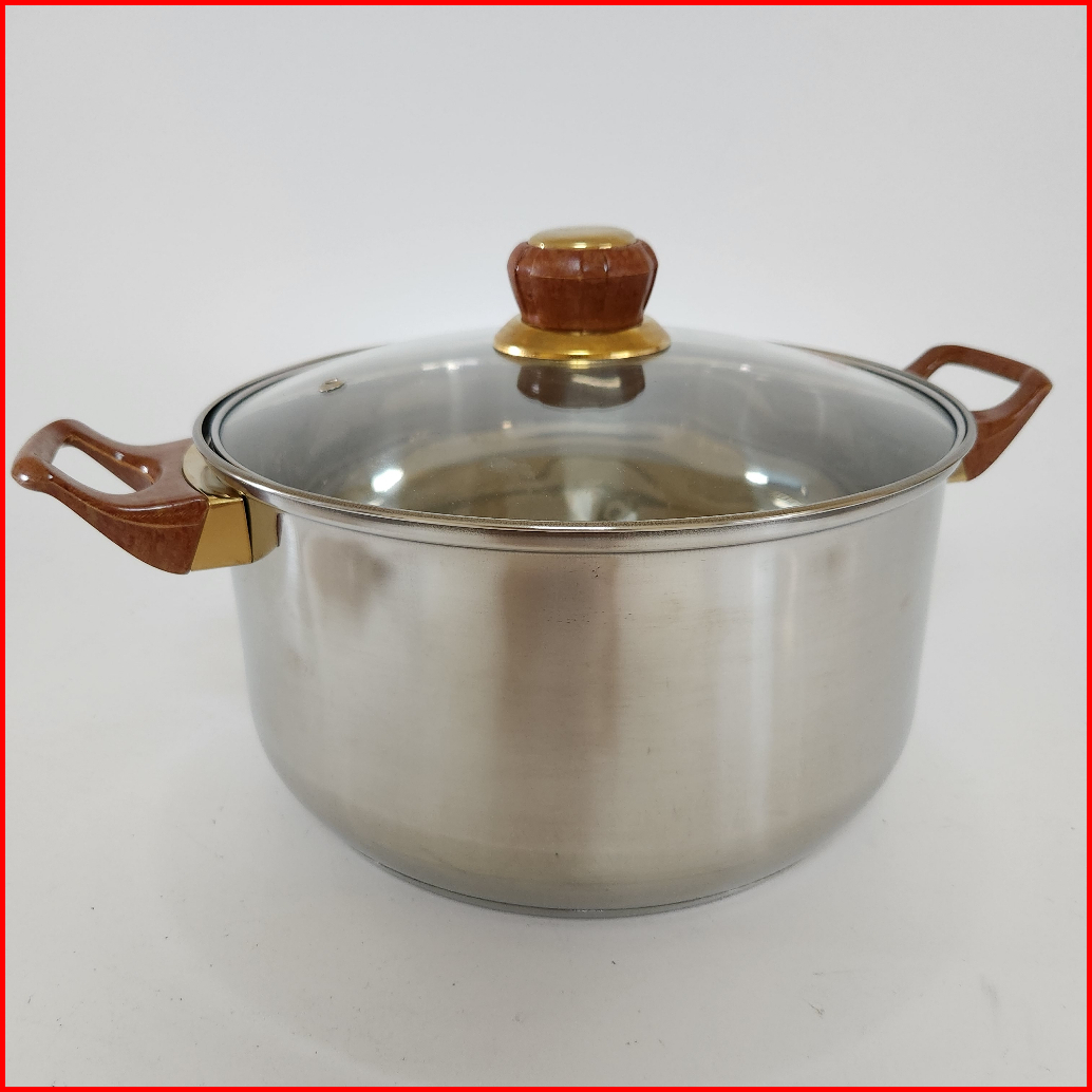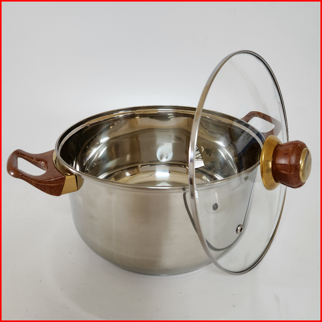 High Quality Panci Stainless Tebal Tutup Kaca Gagang Dua Cokelat Sauce Pot Casserole Sup