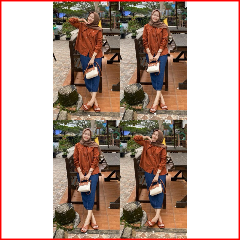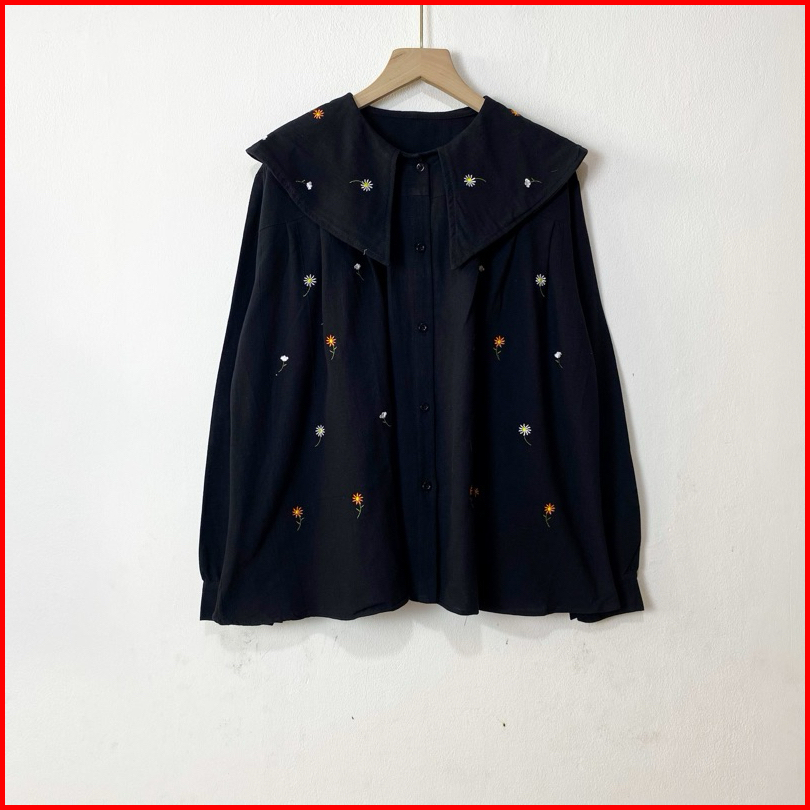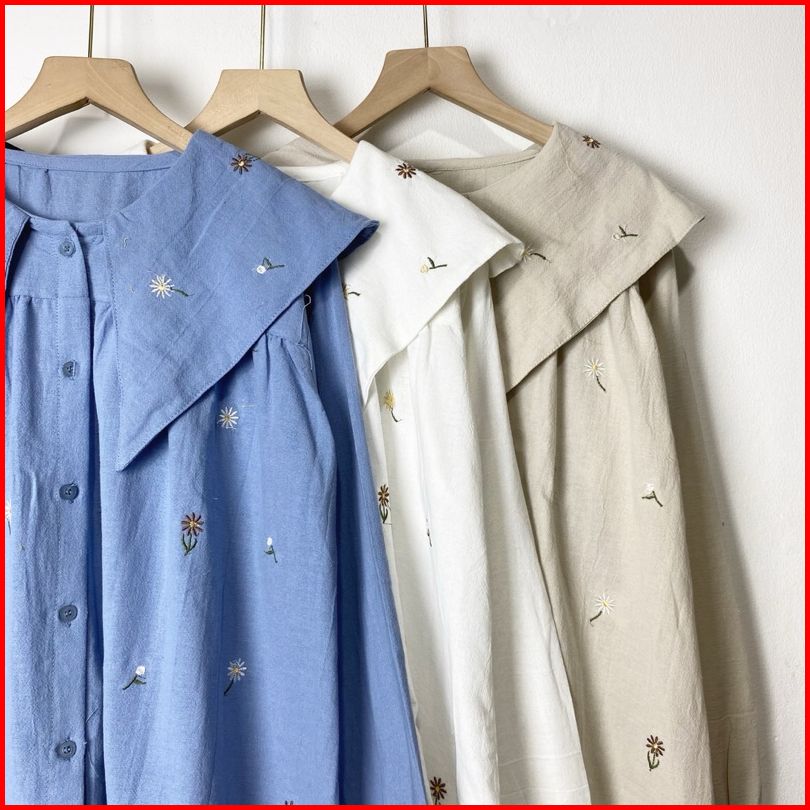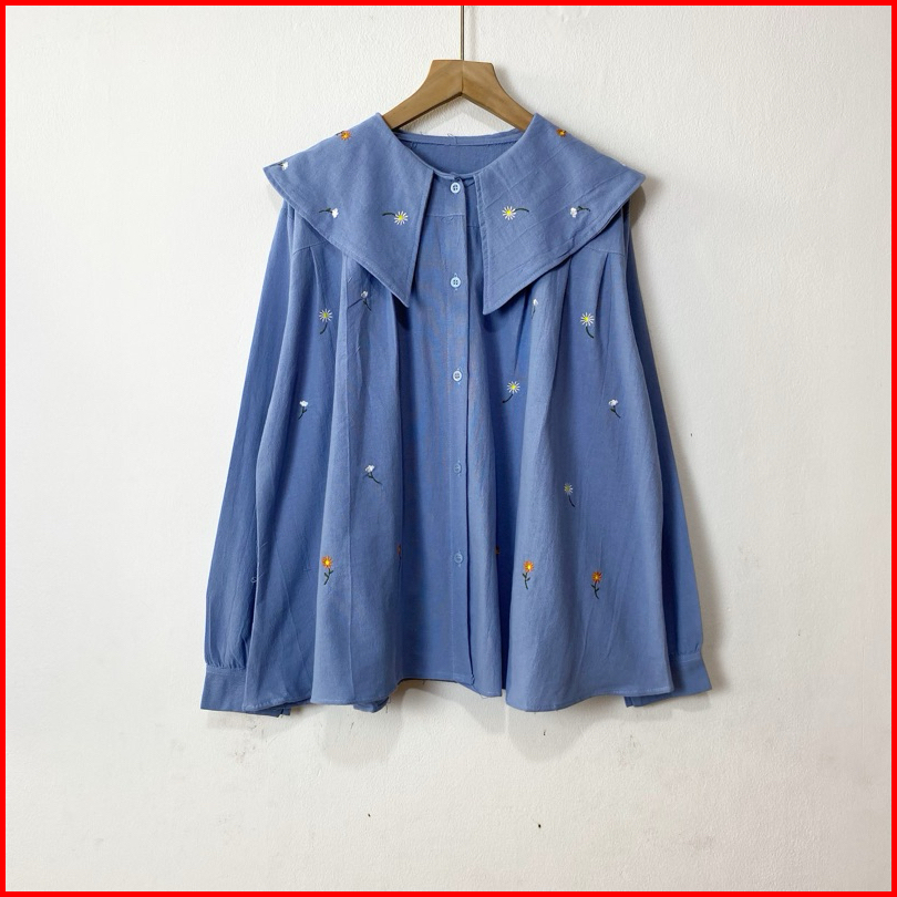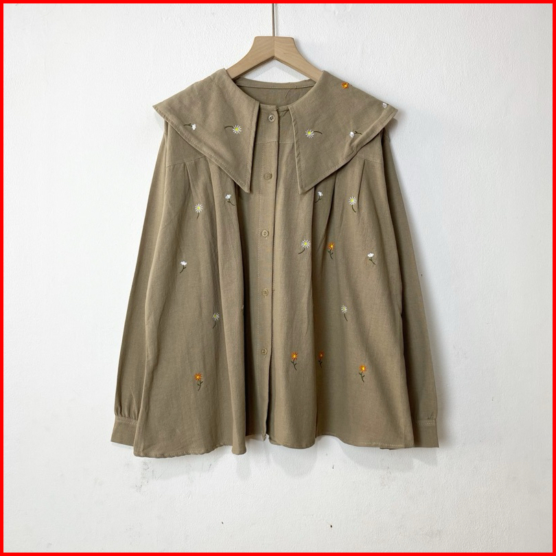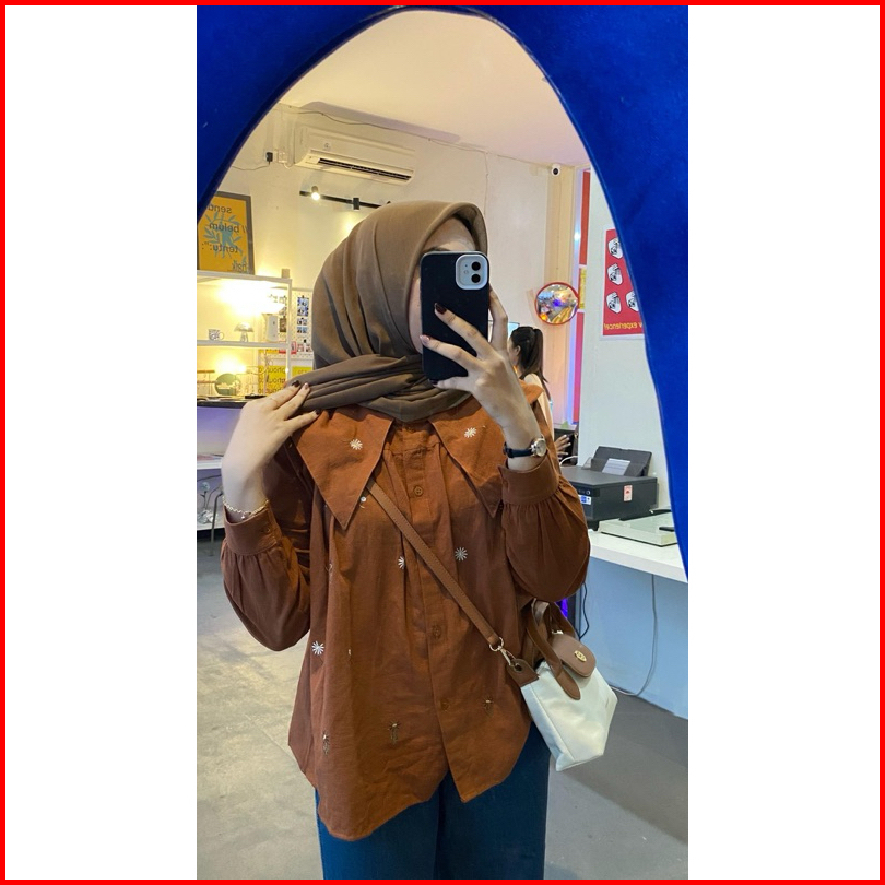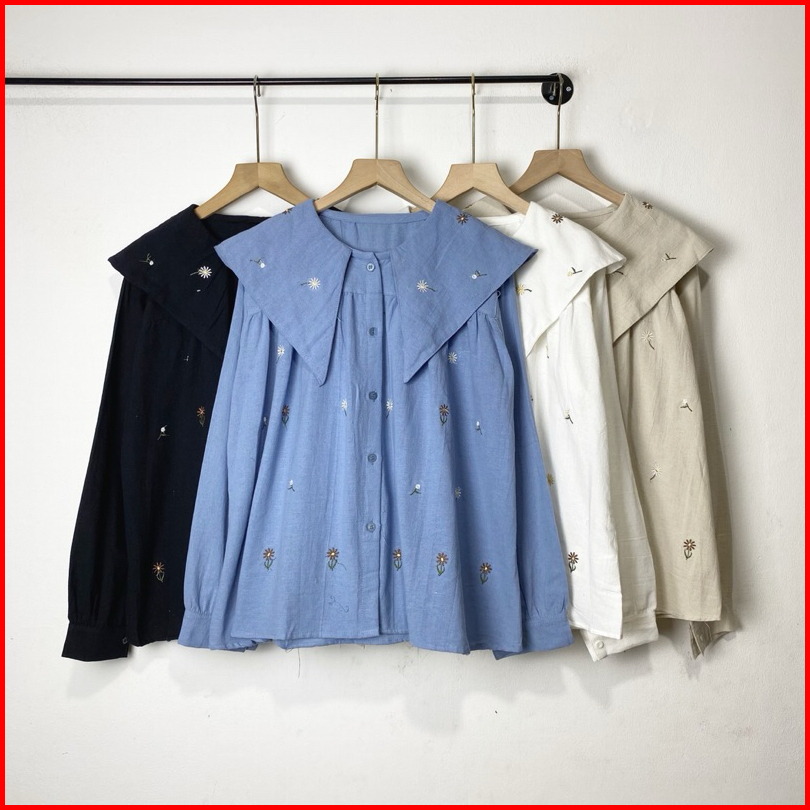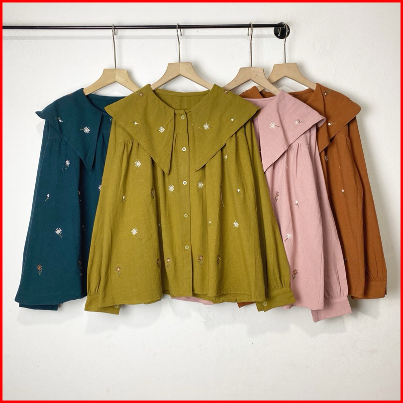 Aneta Blouse Ld 115 Kemeja Bordir Bunga Kerah Collar Linen