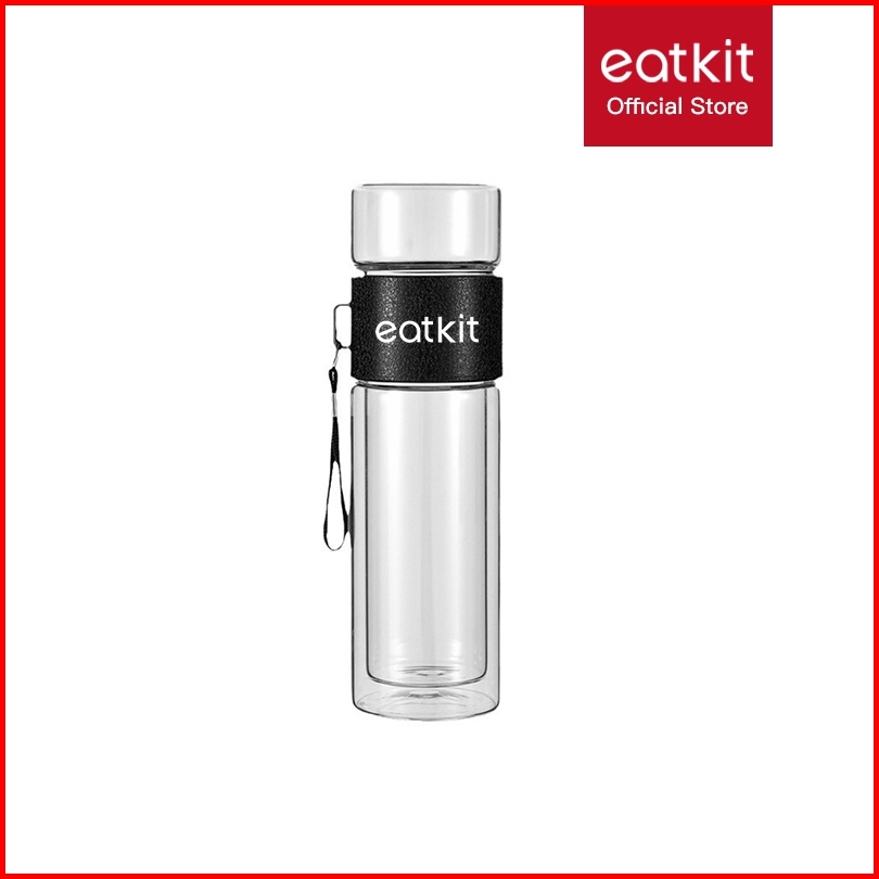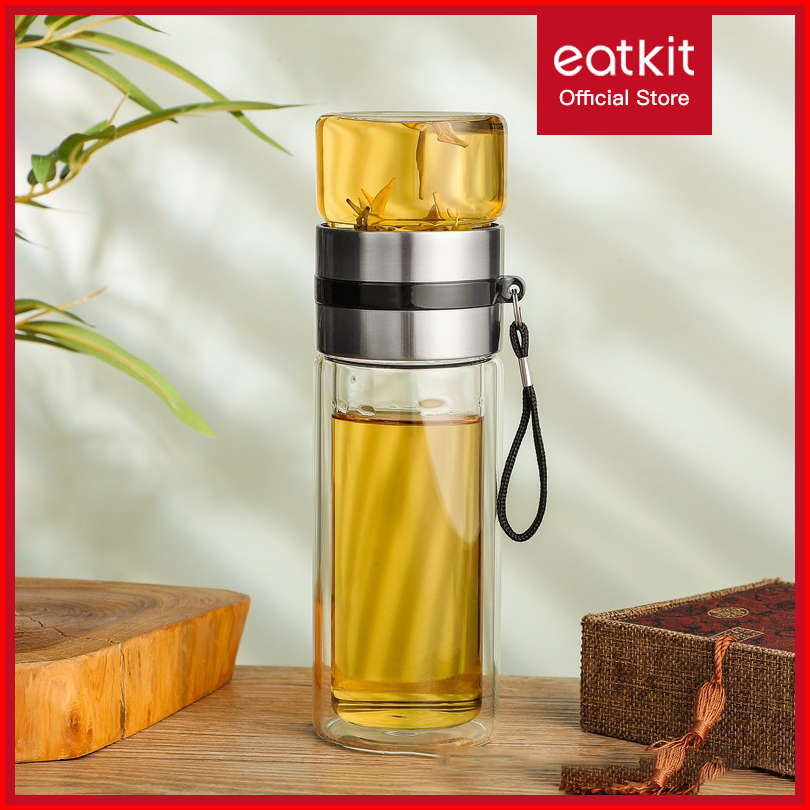 Eatkit 420ml Double Glass Bottle Tea Purifier Infused Water Botol Minum Kaca Penyaring Teh Tumblr Kacateapot Infuser Woo