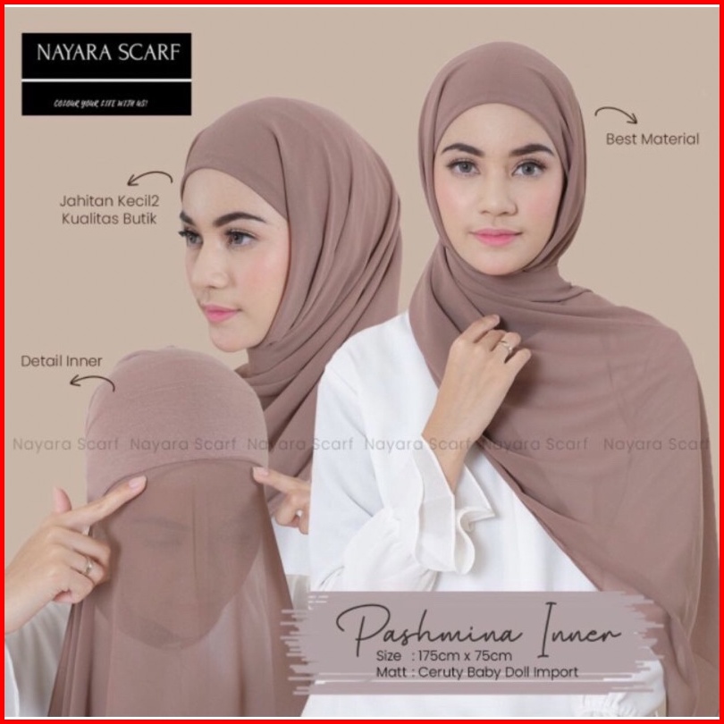 Pashmina Inner Ceruty Babydoll Import 2in1 Premium 180cm X 75cm