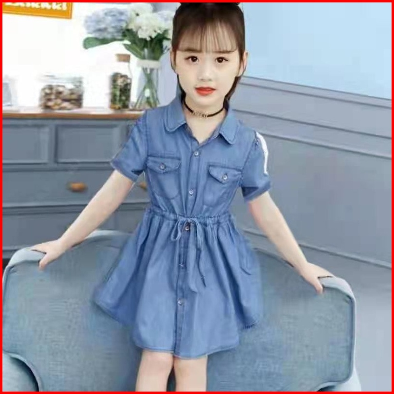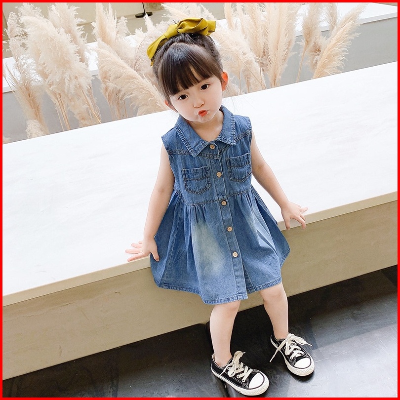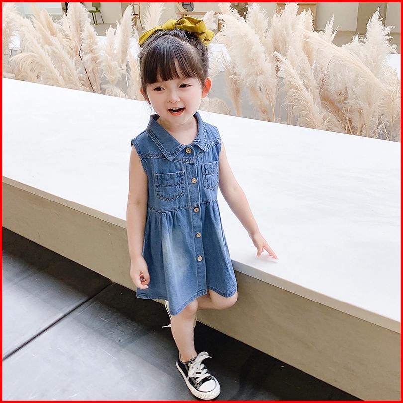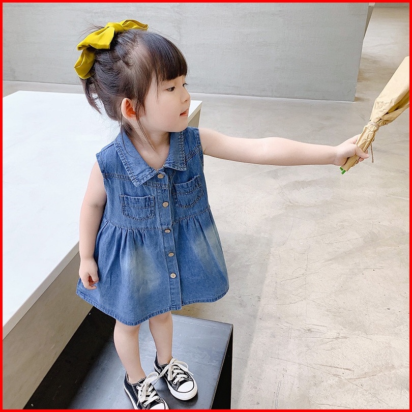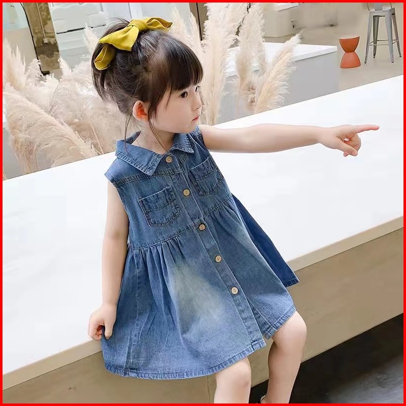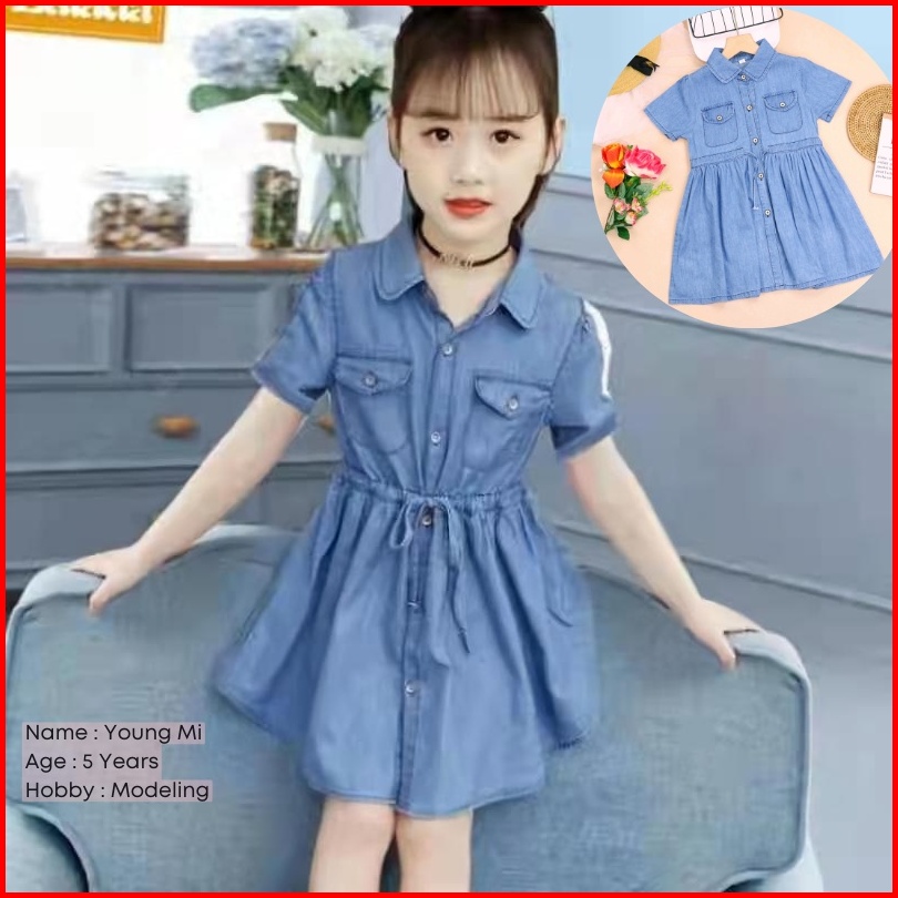 1 - 5 Tahun Dress Dae Hwa Baju Korea Style Denim Jeans Anak Perempuan Balita Harian Polos Kiosbalitaaprillia