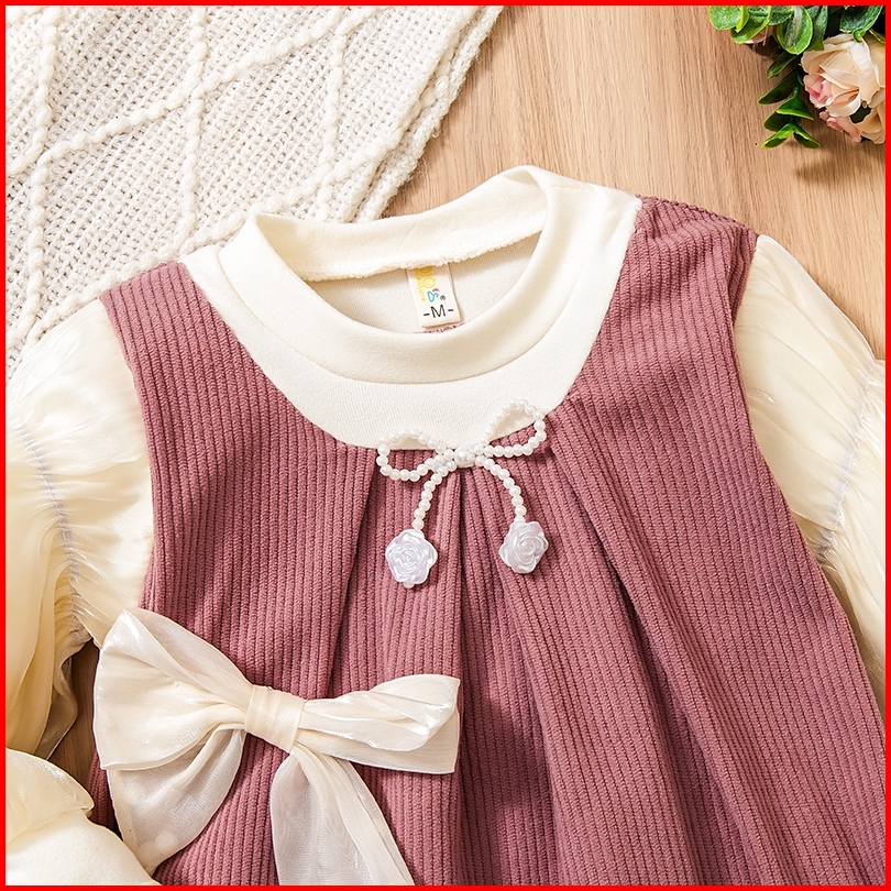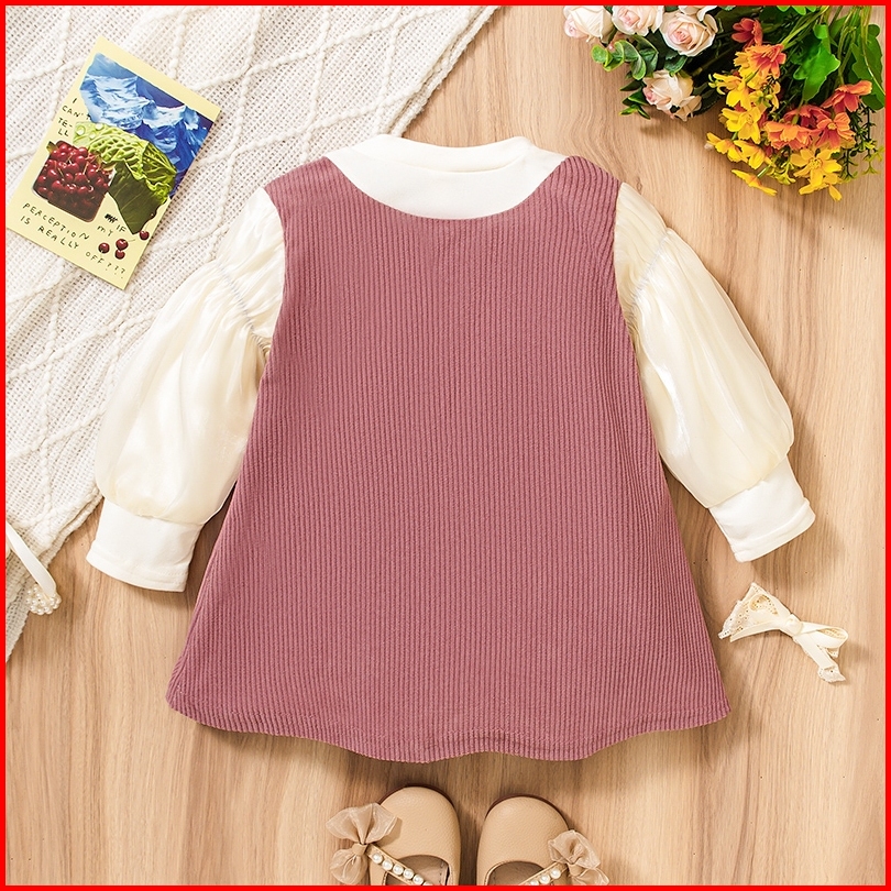 Twinkle Dress Anak Perempuan Lengan Panjang Bahan Corduroy Motif Polos Korea Style Usia 1-4 Tahun