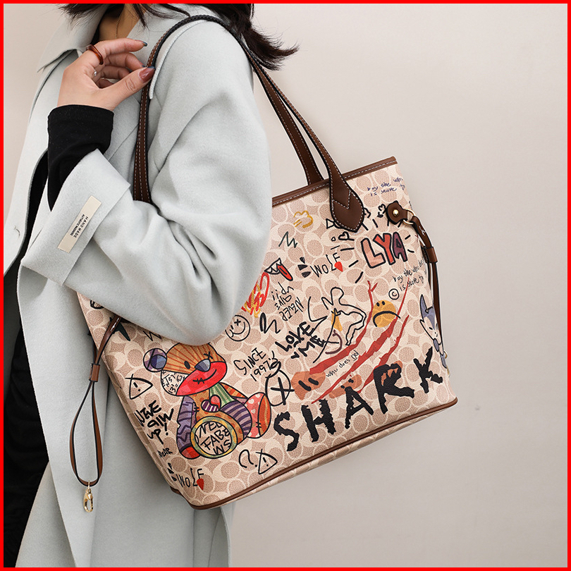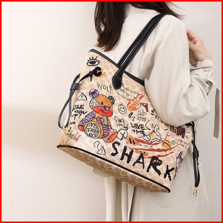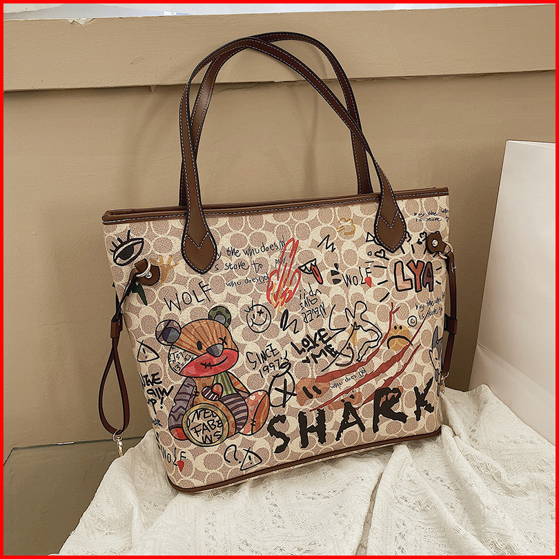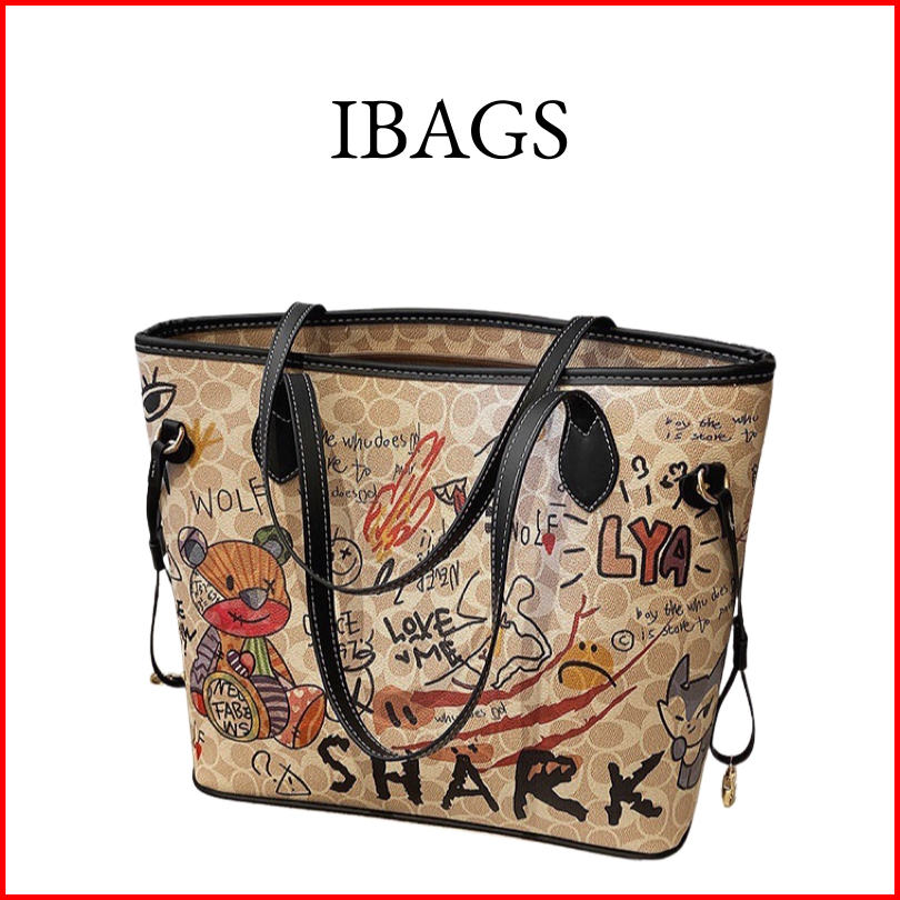 Ibags Tas Tote Bag Graffiti Wanita Fashion Kulit Sintetis