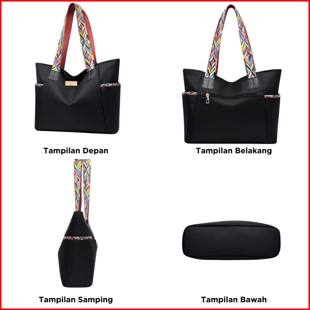 Hanami Tas Tote Bag Wanita Anti Air Hitam Floata Ta658b5 Premium Bag Besar Cangklong Bahu Kuliah Kerja Fashion Cangklong
