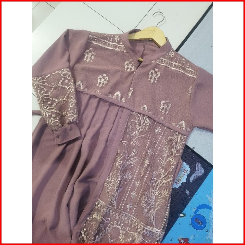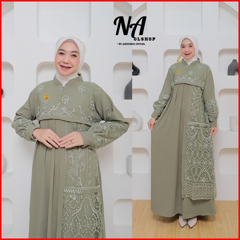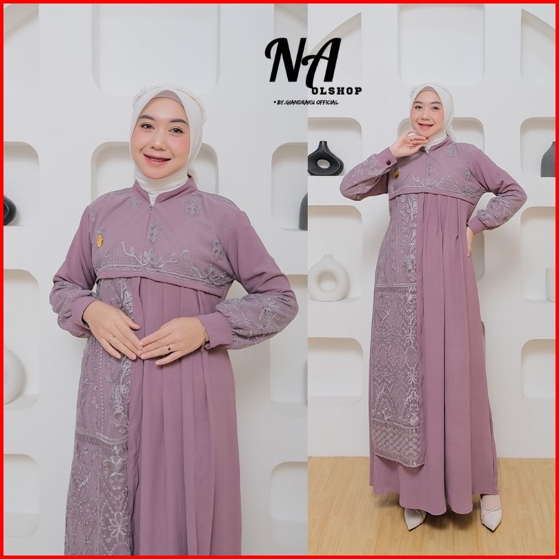 Aghnia Dress Gamis Terbaru 2024 Bahan Krinkle Kombinasi Tille Sapto Elegan Simple Hits