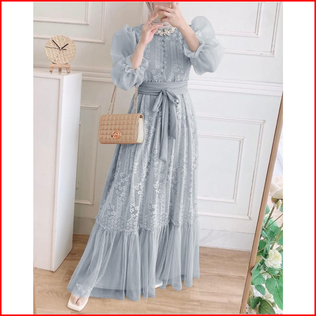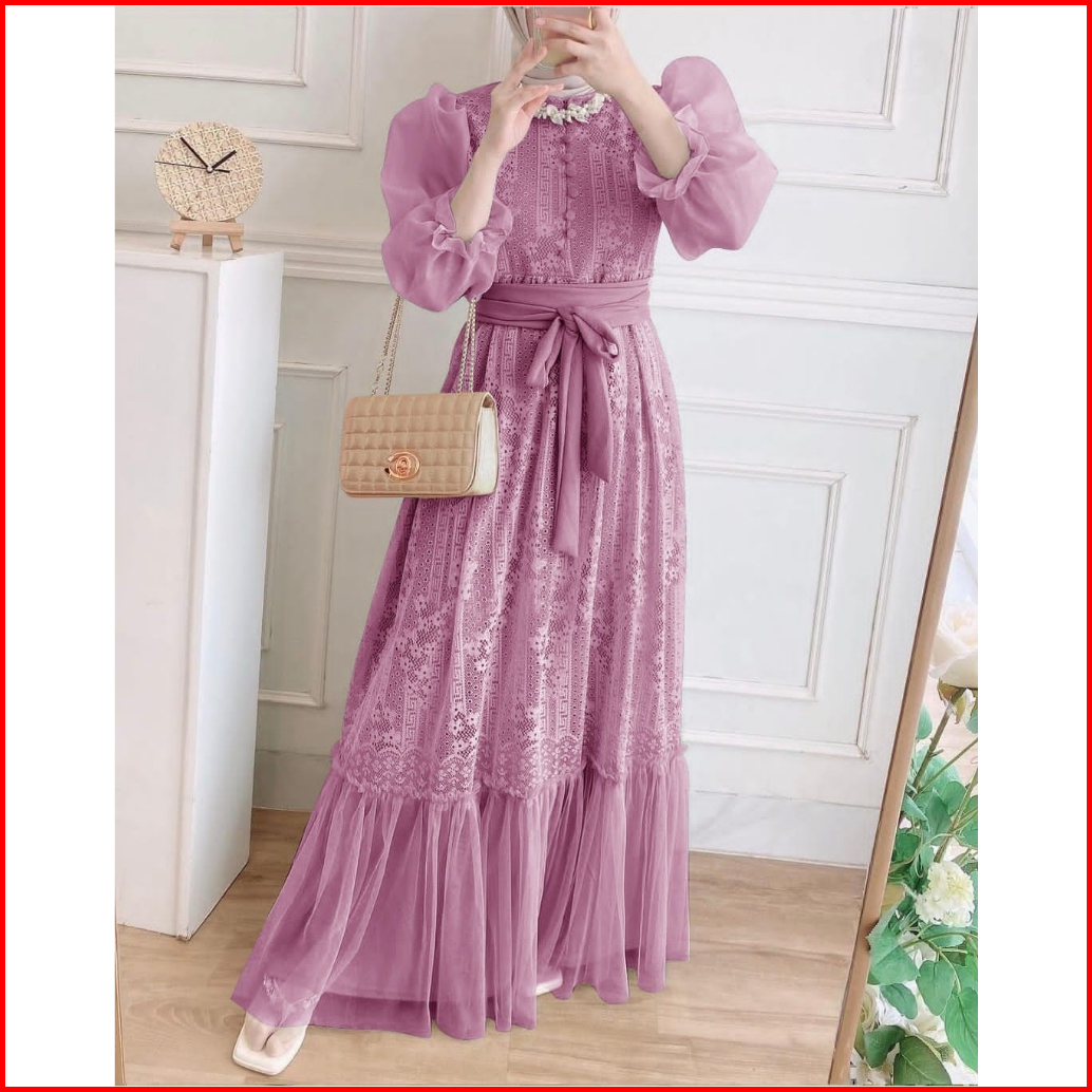 Aurora Boutique Maxi Inara Busui Friendly Brukat Katun Kombinasi Furing Tile Halus Polos Gamis Pakaian Dress Wanita Terb