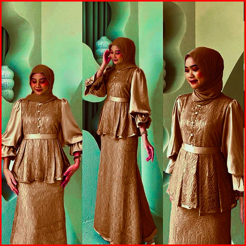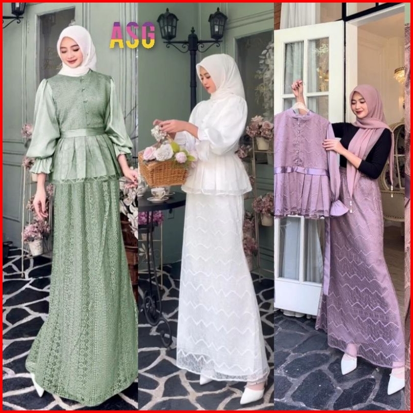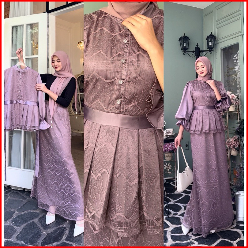 Mia Gamis One Set Brukat Terbaru Premium Remaja Dewasa Wanita Terkini Dress Fashion Pesta Seragaman Kondangan Setelan Ro