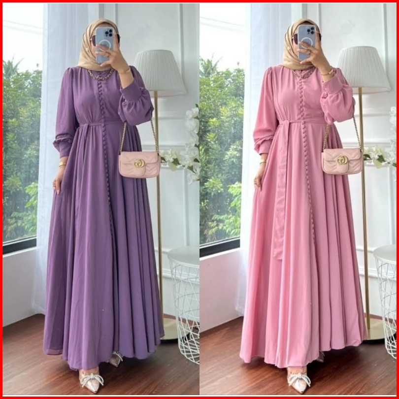 Gamis Wanita Muslimah Model Kancing Seribu Bahan Ceruty Babydoll