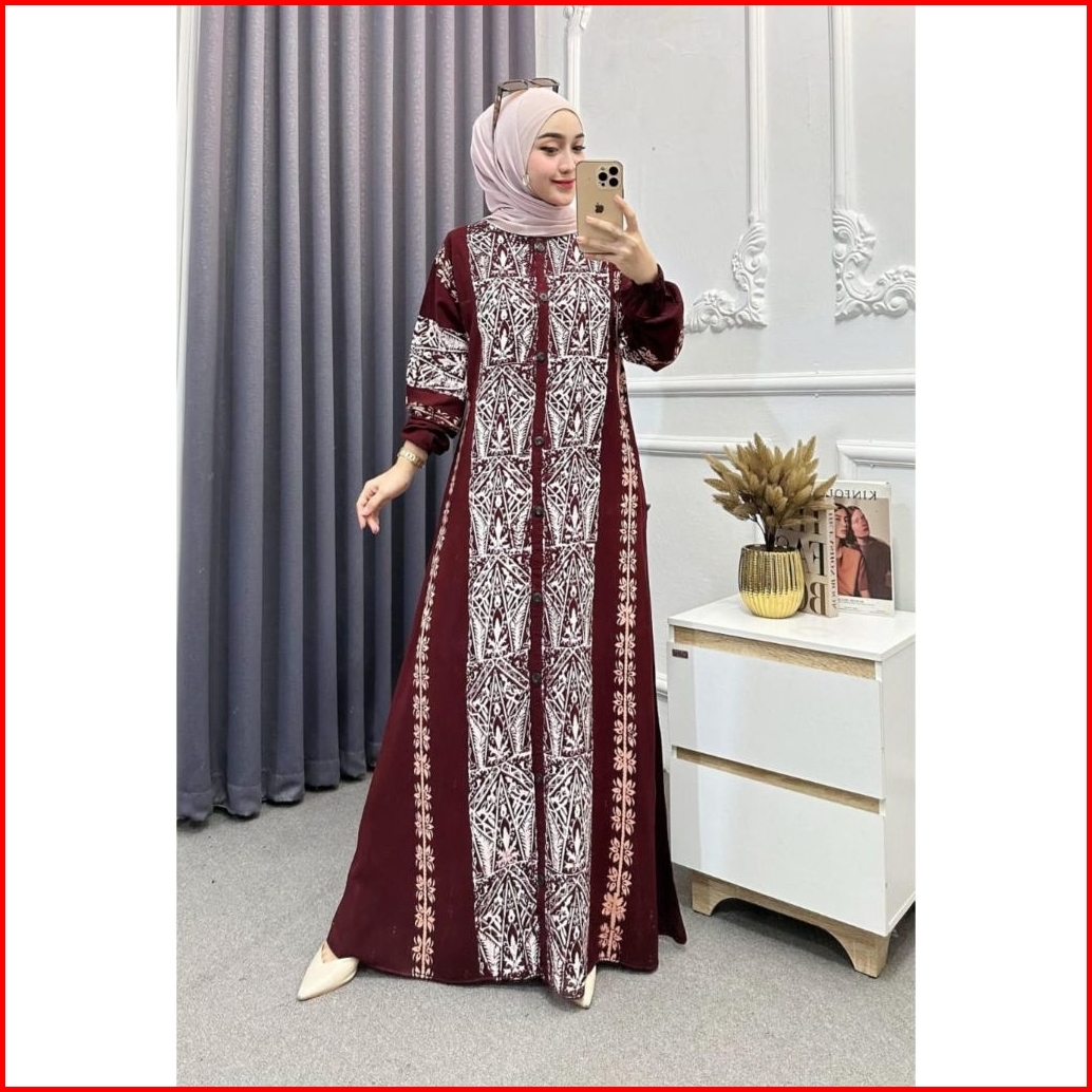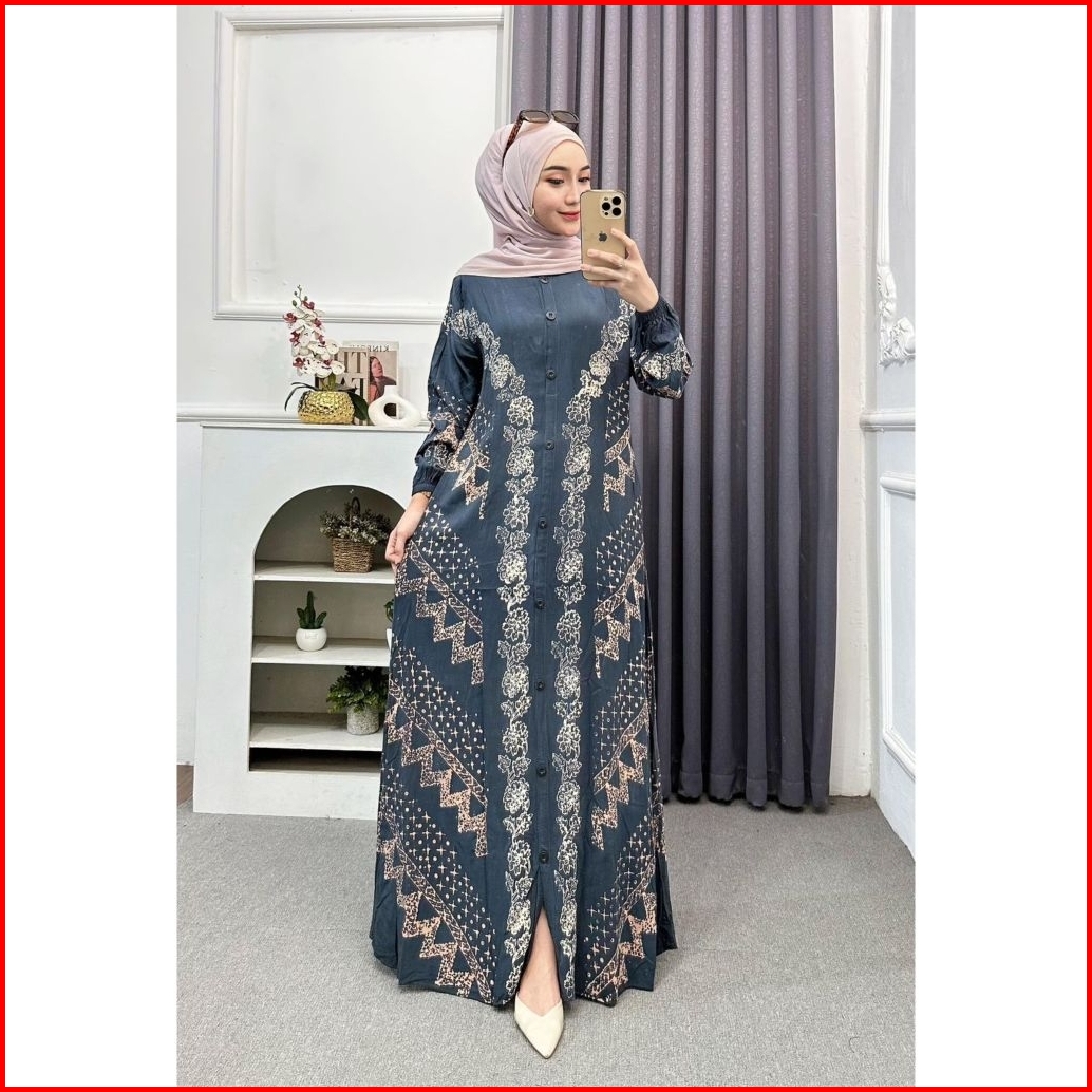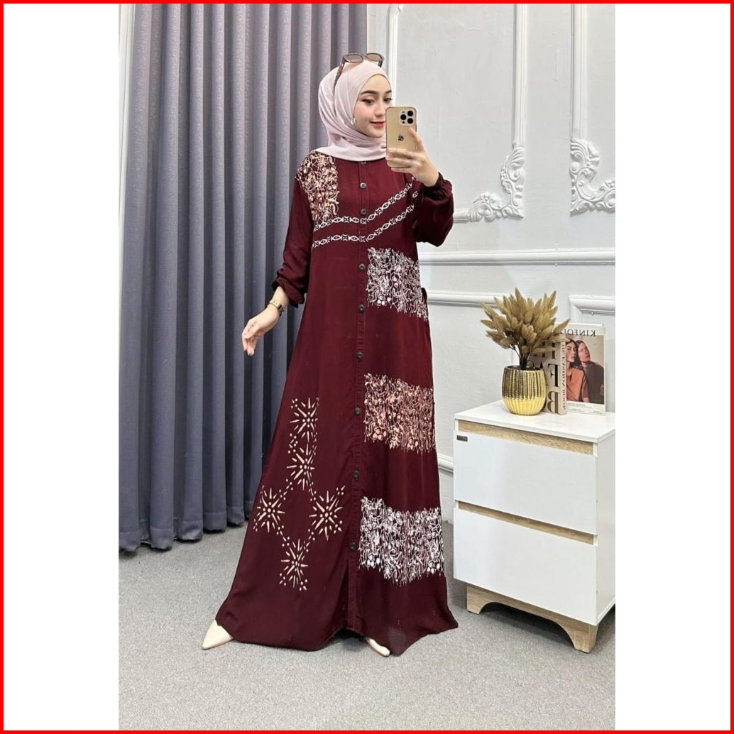 Gamis Rayon Premium Terlaris 2025 Proses Cap Malaman Full Kancing Depan Aktif 3 Tali Samping Busui Friendly Size M L Xl
